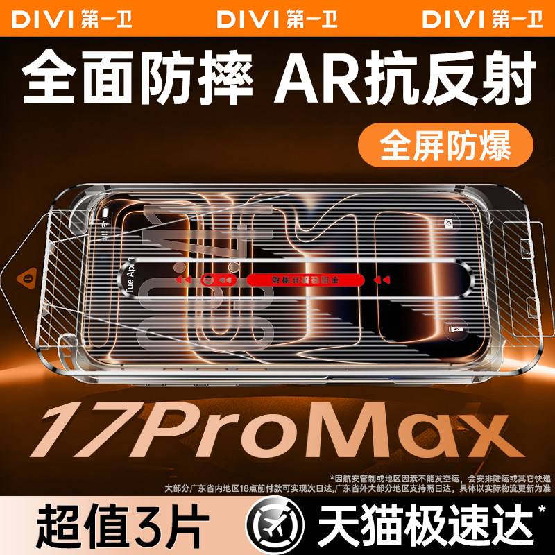 第一卫AR抗反射iPhone17promax钢化膜适用苹果17手机16pro屏幕15保护ip全屏14覆盖13屏幕12防摔新款por贴膜pm