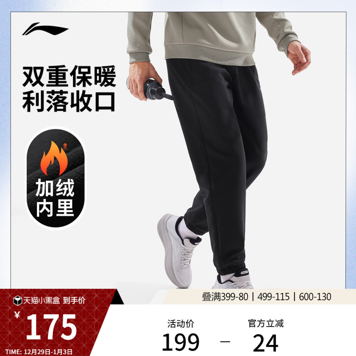 李宁运动长裤男士2025新款健身长裤冬季加绒保暖束脚梭织运动裤