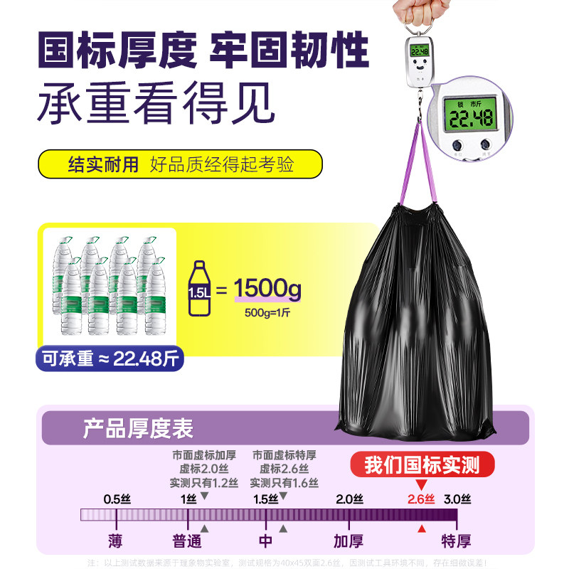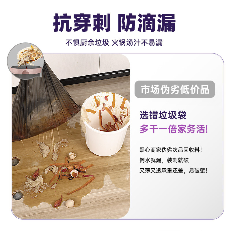 手提式抽绳垃圾袋家用加厚实惠批发装厨房黑色大号垃圾袋