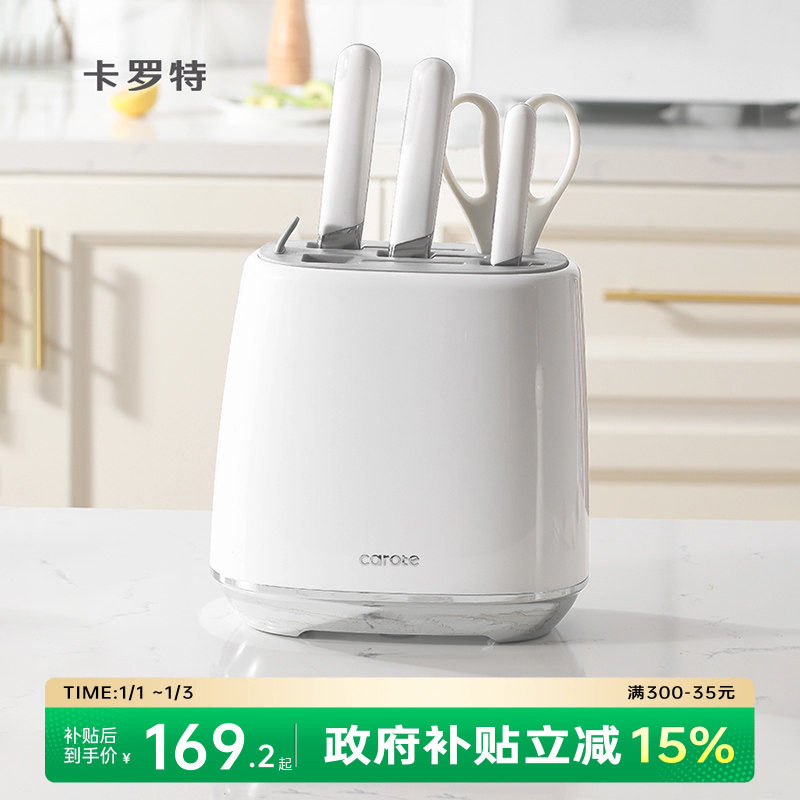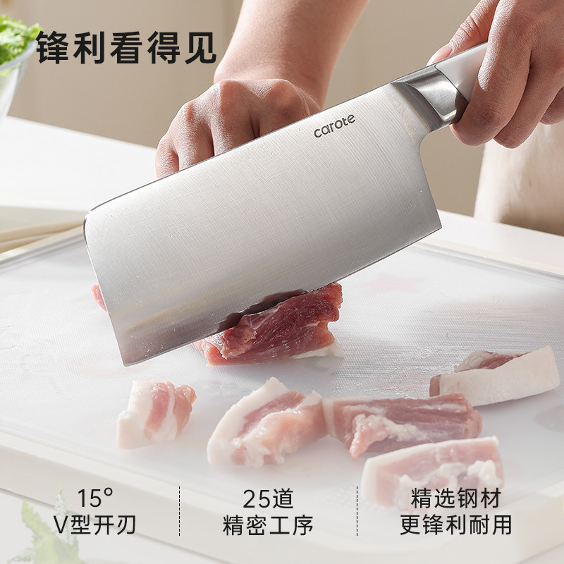 卡罗特刀具套装厨房组合全套不锈钢菜刀家用切菜板二合一砧板套刀