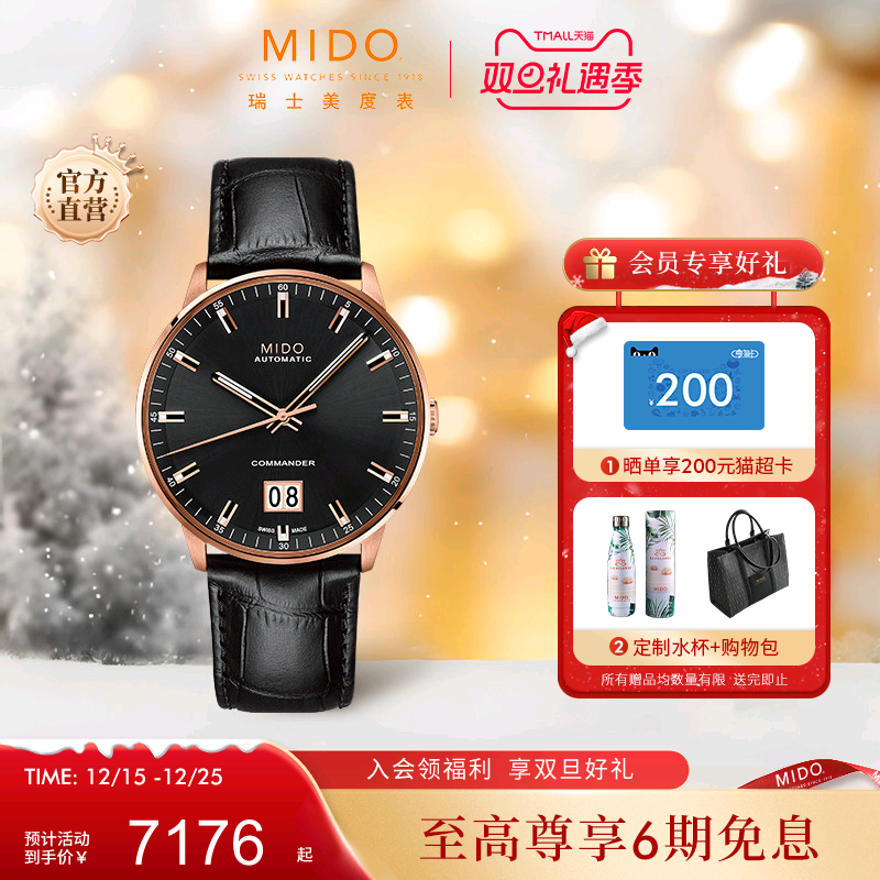 Mido美度手表男士指挥官大日历夜光大表盘皮带男表全自动机械腕表