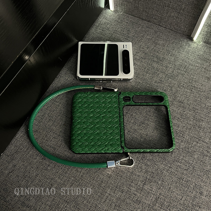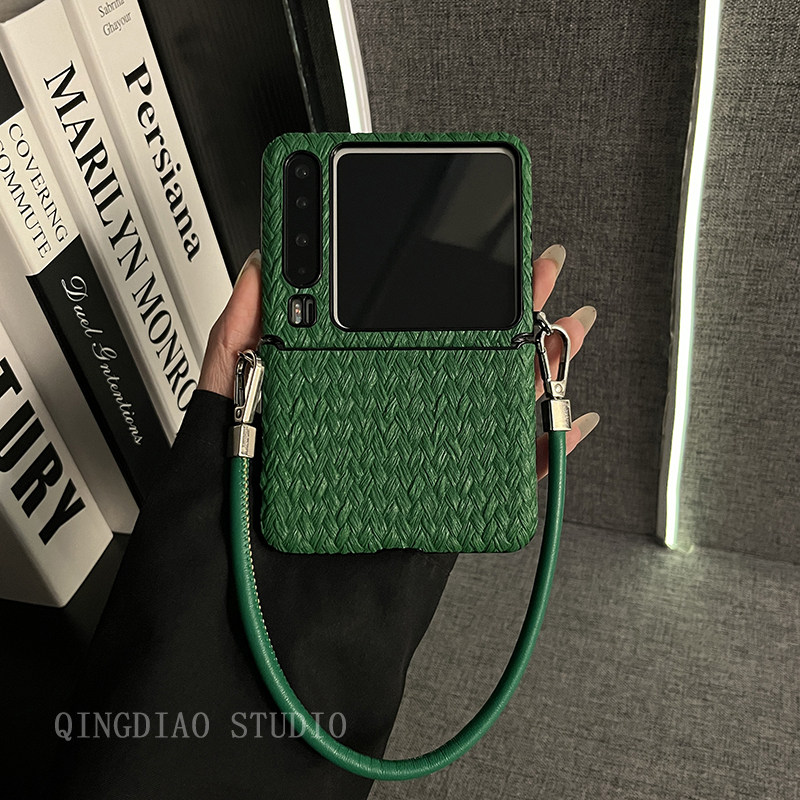 轻调 高档ins墨绿草席纹皮质手提绳适用于华为Pura X手机壳全包新款purax典藏版折叠屏p50宝盒翻盖防摔保护套