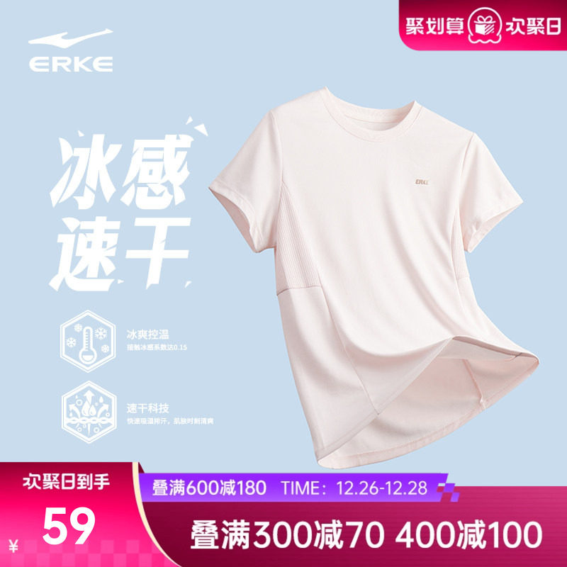 鸿星尔克短袖t恤女夏季新款女士跑步上衣羽毛球运动服冰丝速干衣