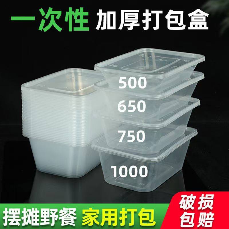 750ml/650方形餐盒一次性打包盒商用长方形快餐塑料带盖外卖饭盒
