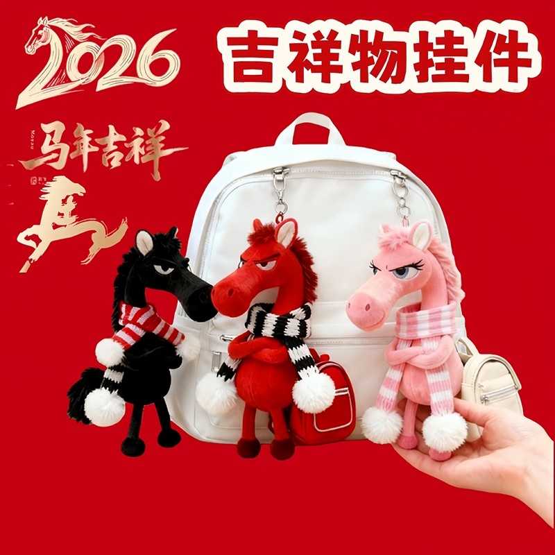 2026爆款马年吉祥物天选高冷黑马公仔挂件包包挂饰毛绒玩偶礼品