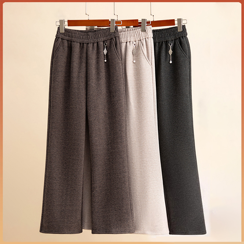 妈妈裤子春秋款松紧高腰弹力中老年女裤宽松大码直筒奶奶加绒长裤