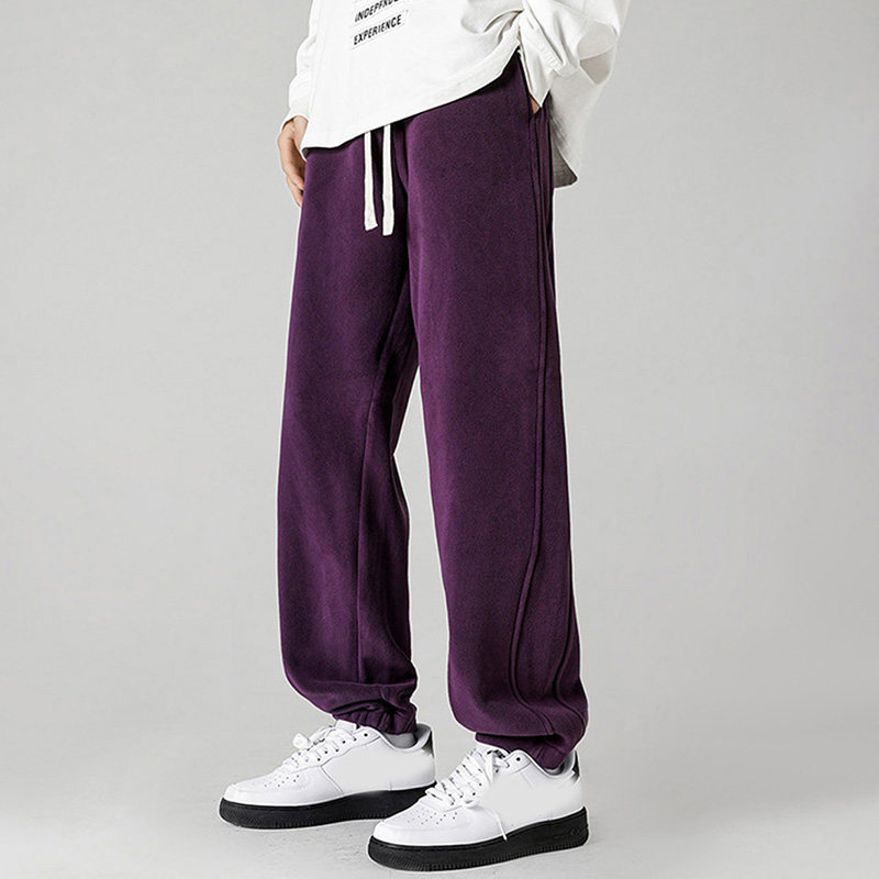 KCP真维斯男装直筒重磅奥粒绒长裤 2025冬季新品显瘦加绒紫色裤子