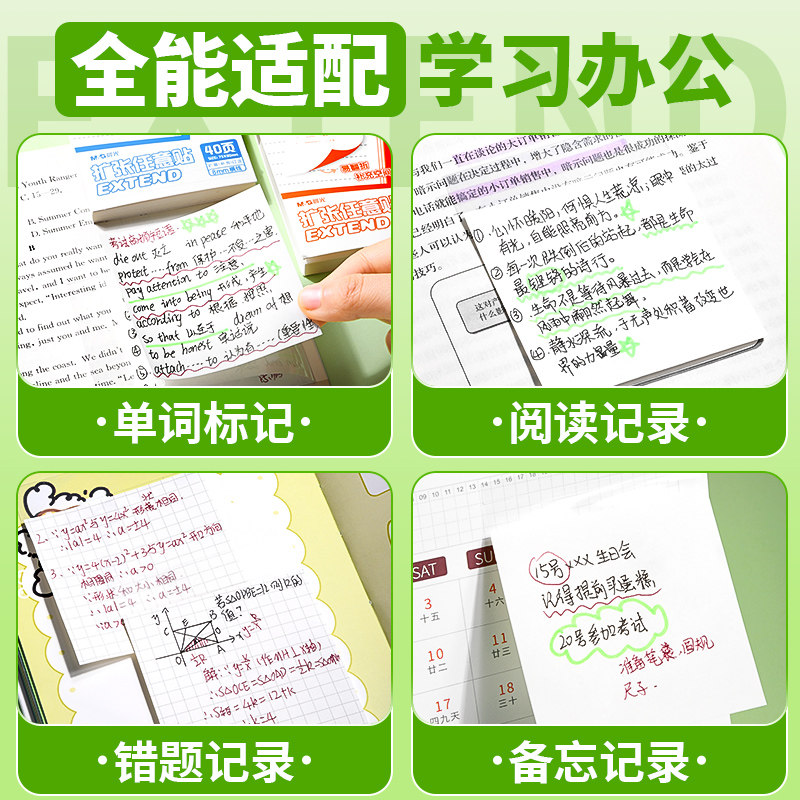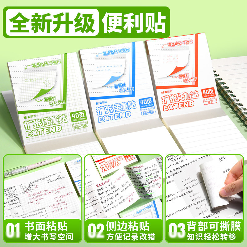 晨光扩张便利贴便签纸不遮挡透明可折叠任意贴初中生专用记笔记小学生订正错题可撕便签本便签贴有粘性办公用