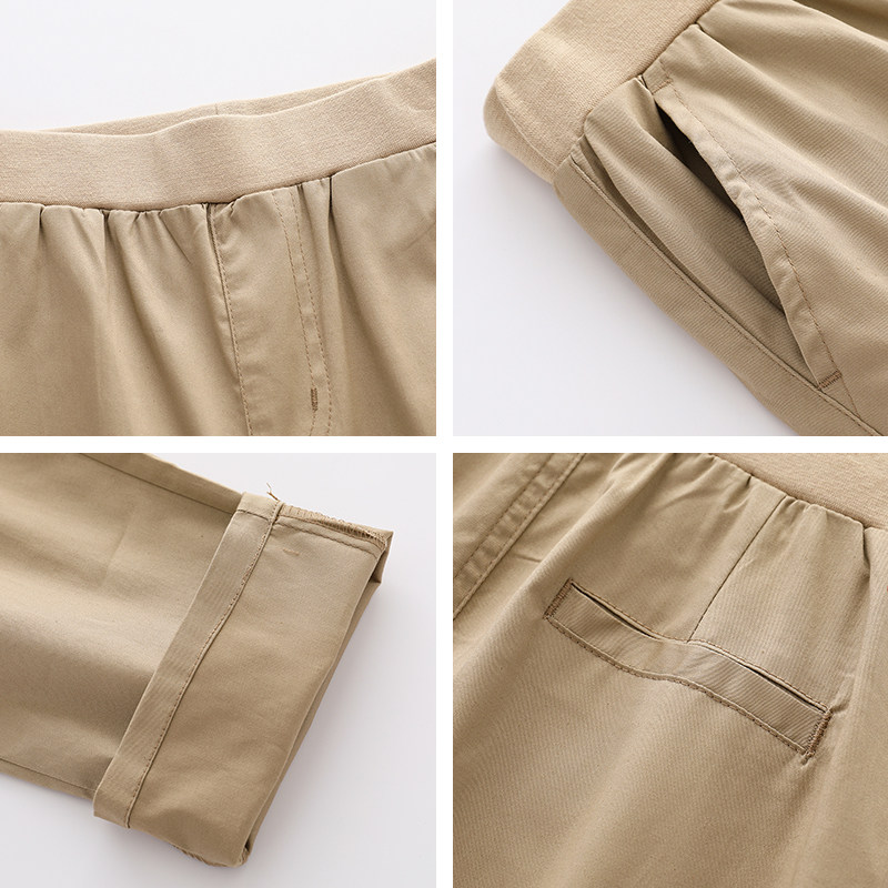 纯棉弹力宽松松紧腰卡其色百搭校服裤子长裤
