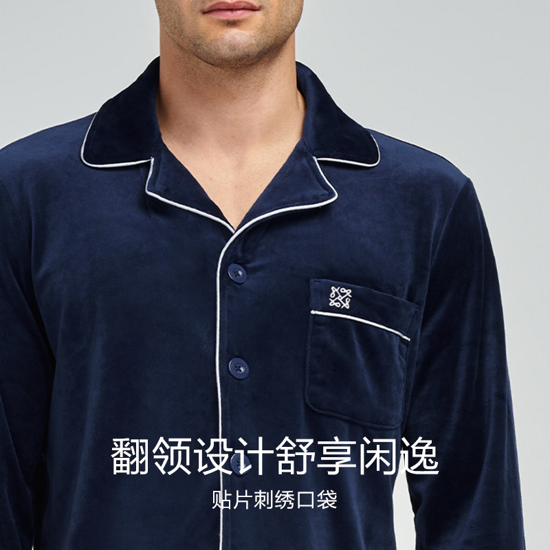冬季珊瑚绒男士睡衣三层夹棉加厚加绒法兰绒秋冬款家居服保暖套装