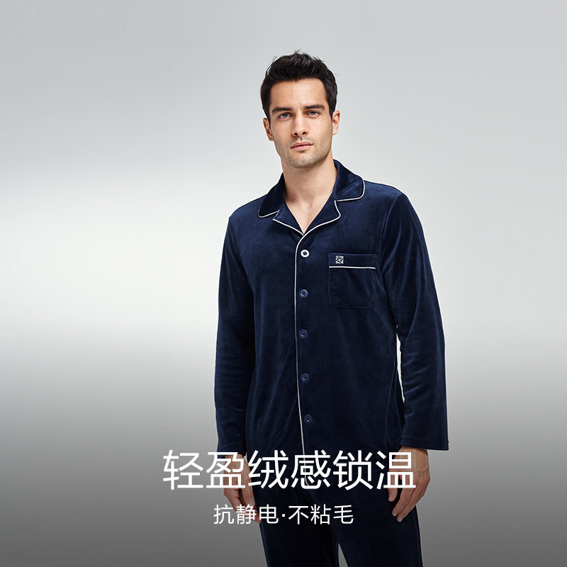 爱慕先生海岛绒抗静电情侣家居服套装男士睡衣秋冬可外穿本命年红