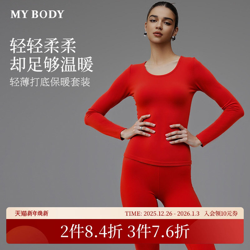 商场同款MYBODY秋季新款女士保暖内衣基础圆领舒适打底衫保暖套装