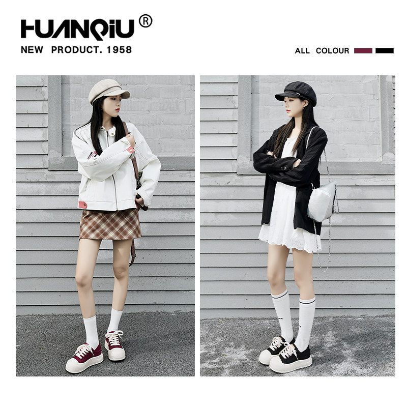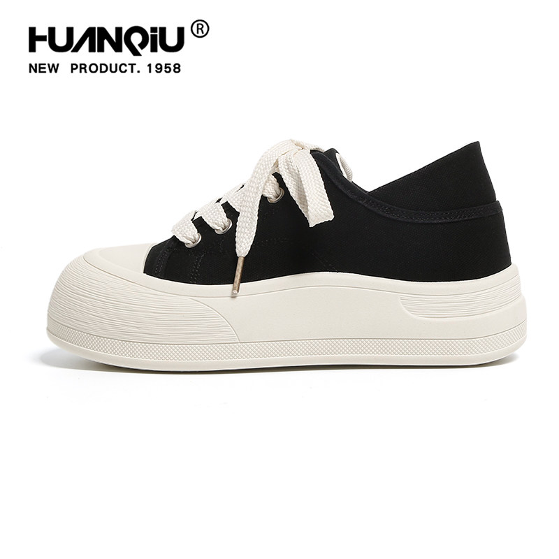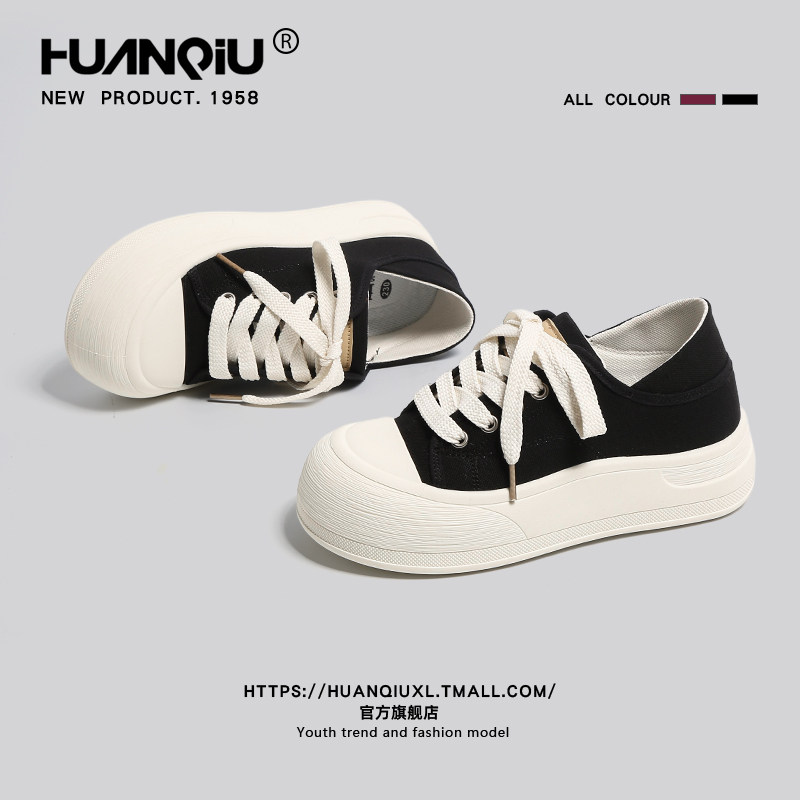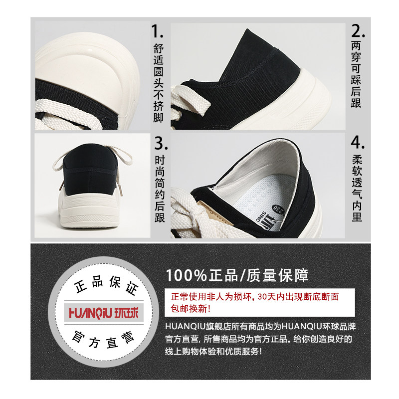 环球两穿黑色厚底帆布鞋女2026新款春季休闲板鞋面包鞋运动小白鞋