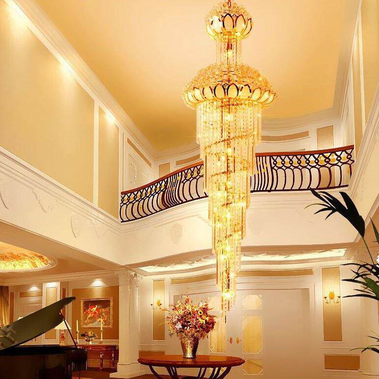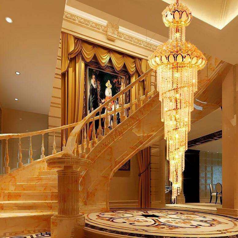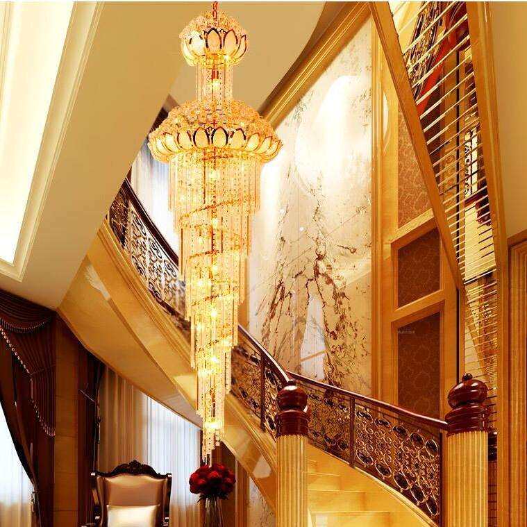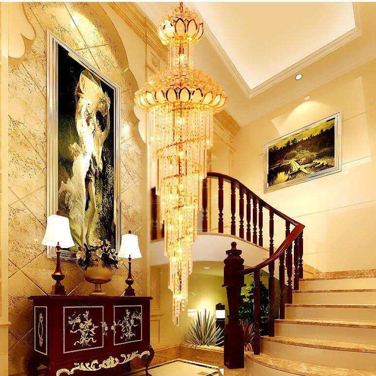 楼梯水晶灯 别墅复式楼梯灯长吊灯 圆形客厅灯大吊灯灯具璀璨