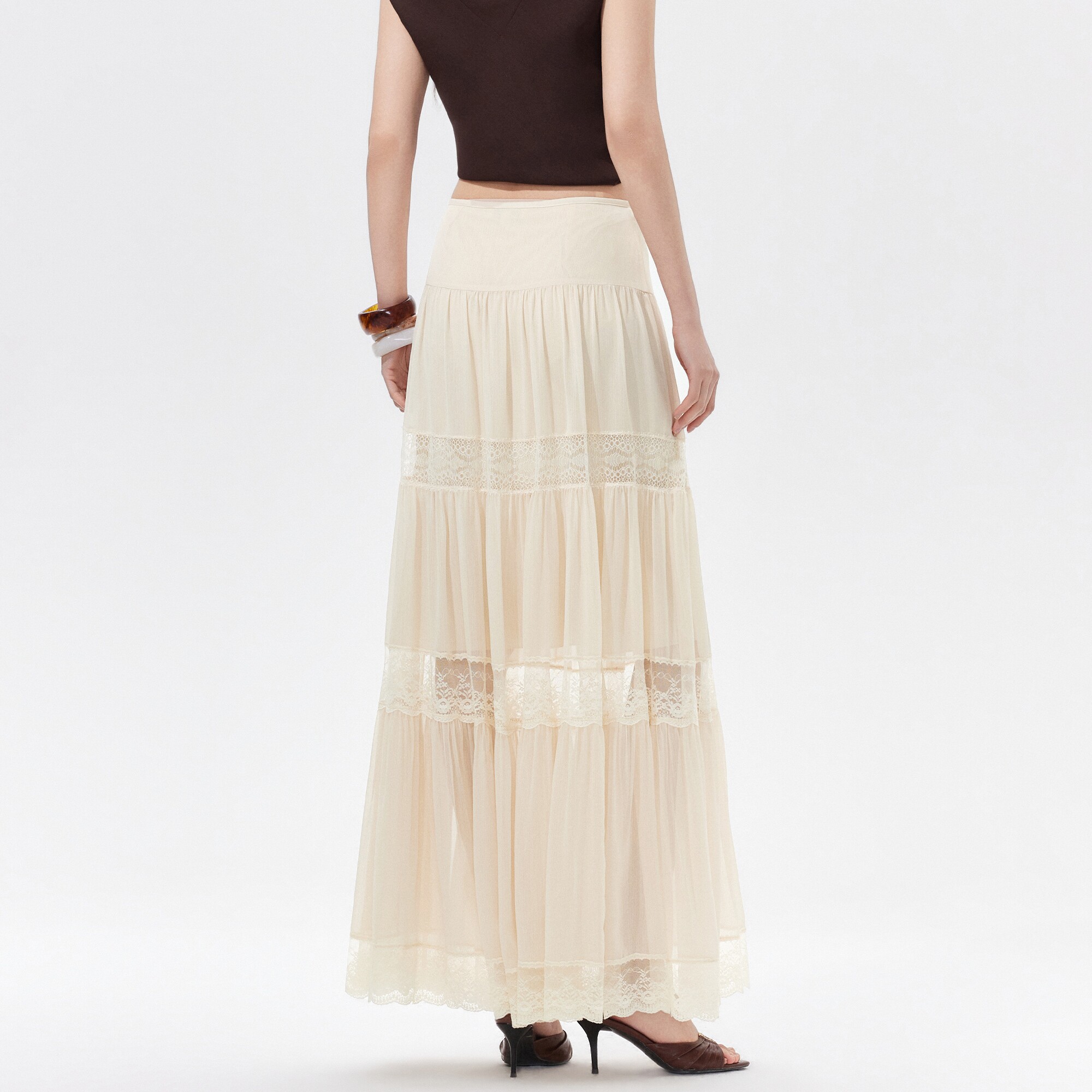 自制。天然高级洞庭100支苎麻蕾丝拼接A字显瘦蛋糕半身裙中长款夏