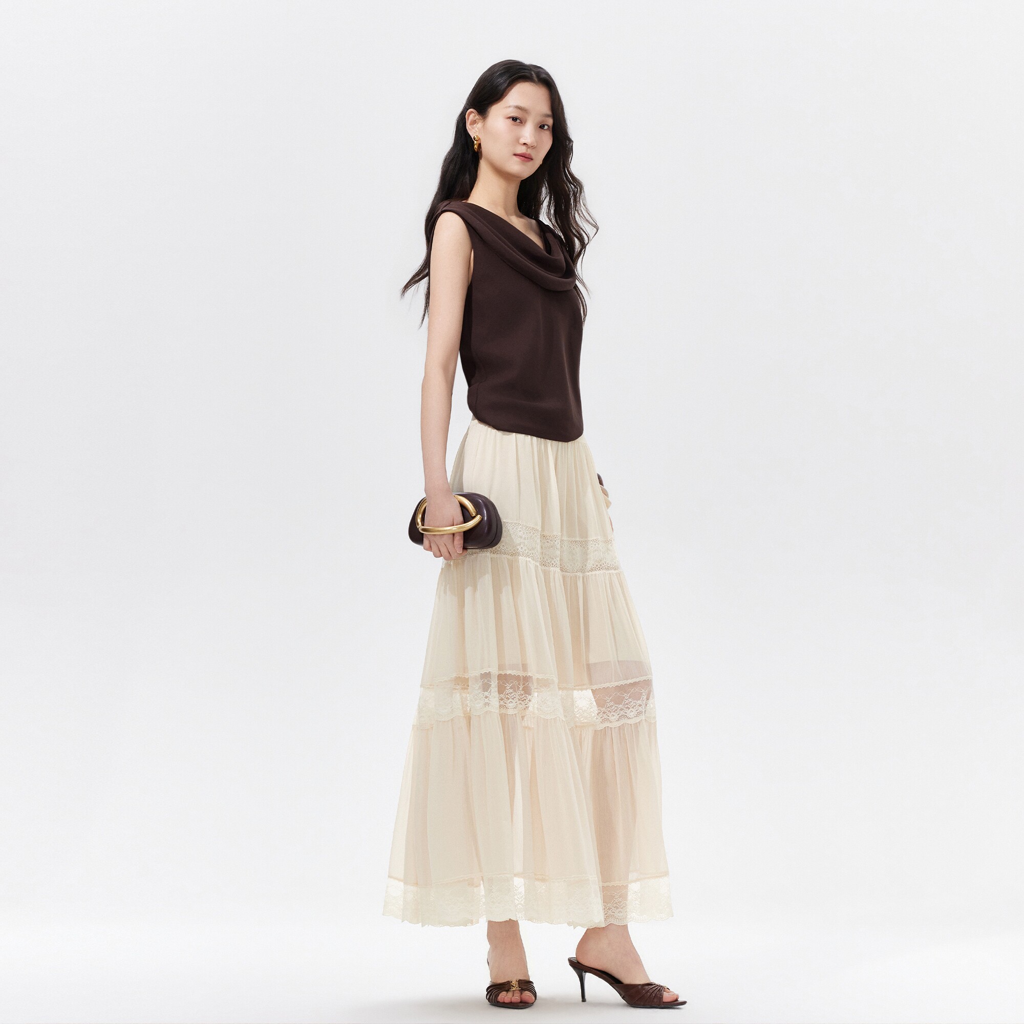 蛋糕版型 修饰线条 蕾丝拼接 增添柔美细节