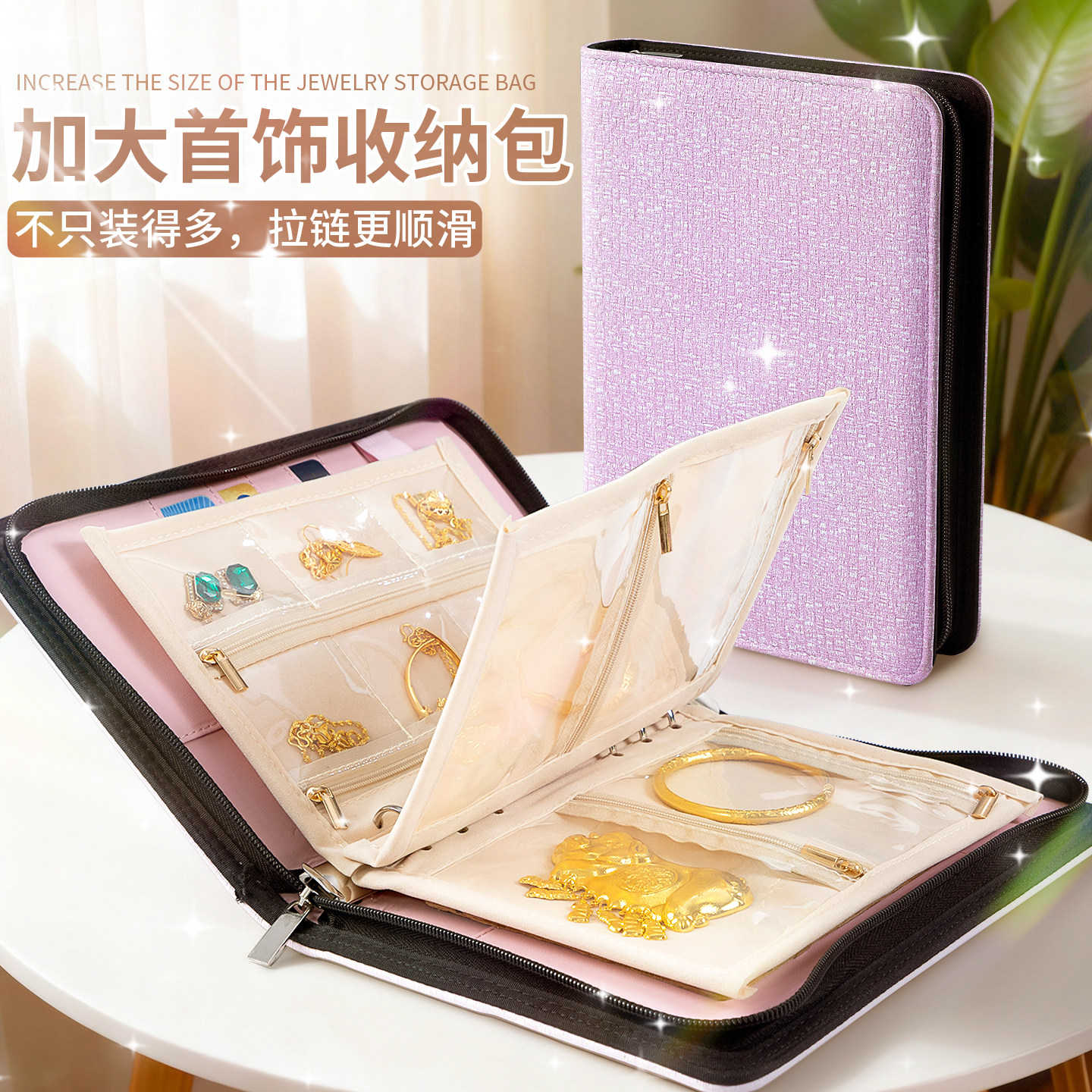 大容量珠宝收纳册活页拉链首饰整理册多功能收纳包2026年新款高颜值高档密封袋首饰收纳拉链款旅游简约便携式