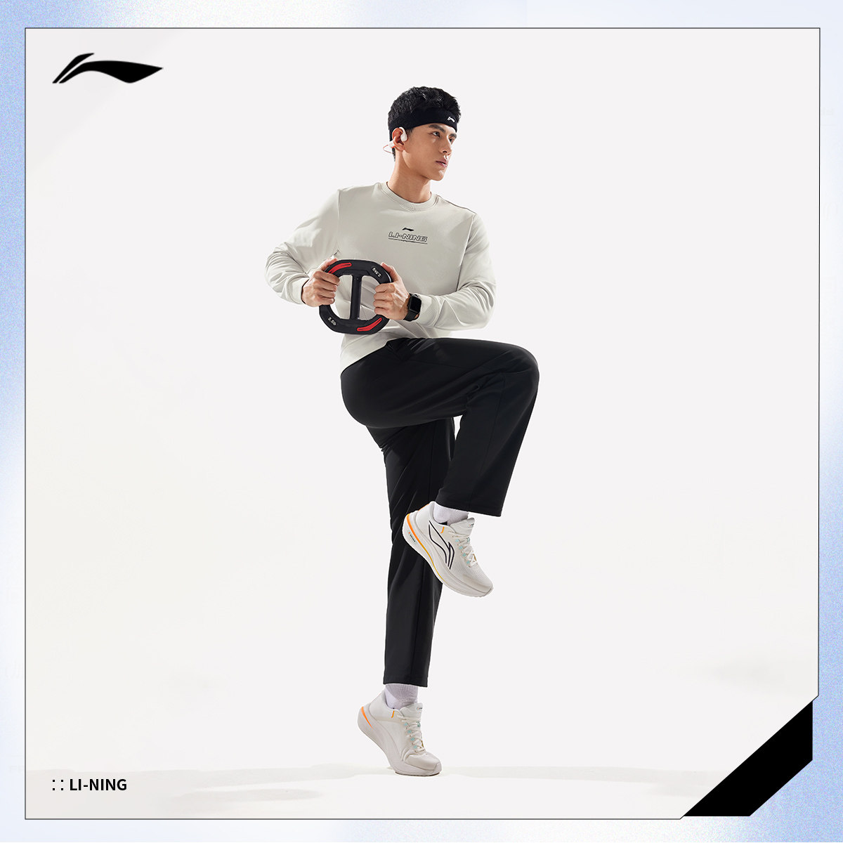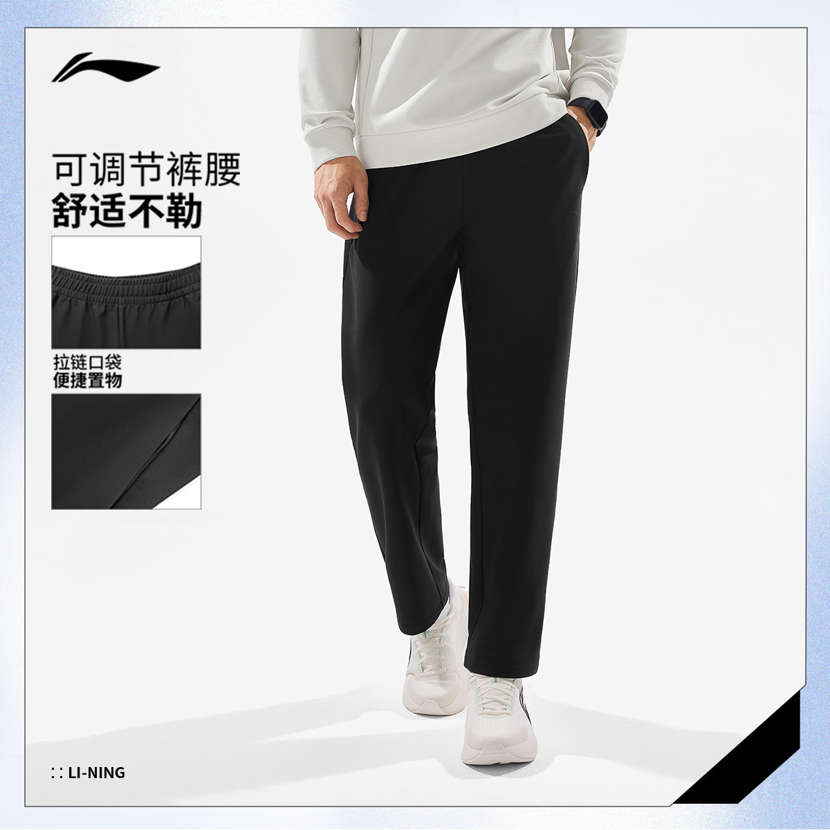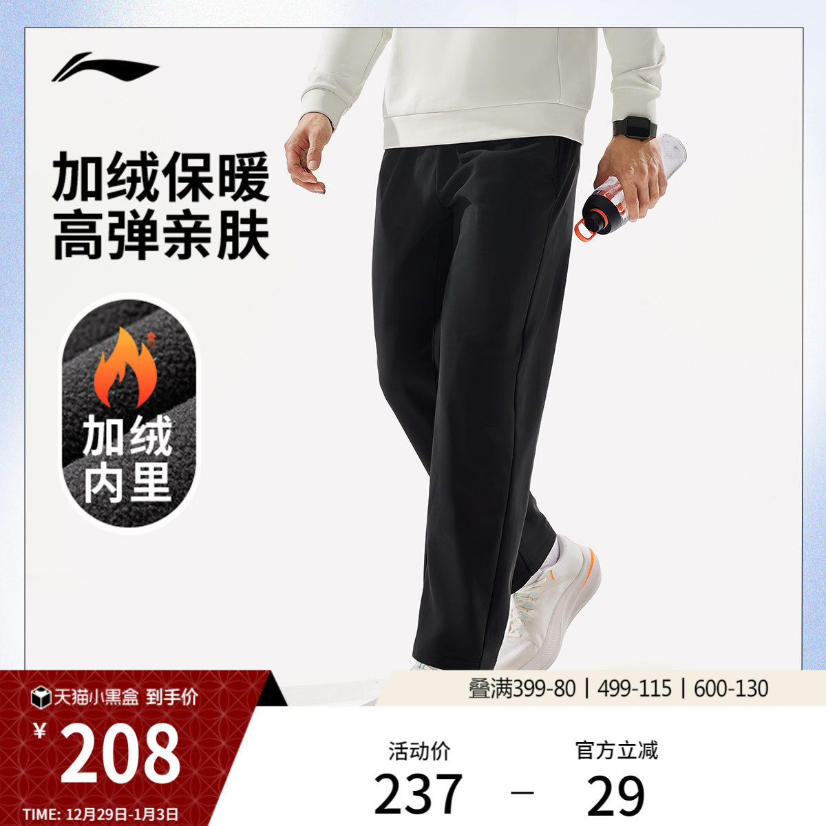 李宁运动裤通勤裤男士25新款健身裤子加绒保暖冬季直筒针织运动裤