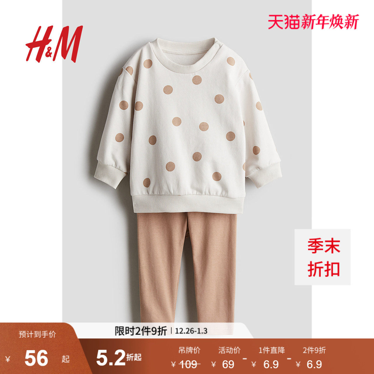 HM童装男婴女婴套装2件式冬季时尚柔软棉质印花卫衣打底裤1170051