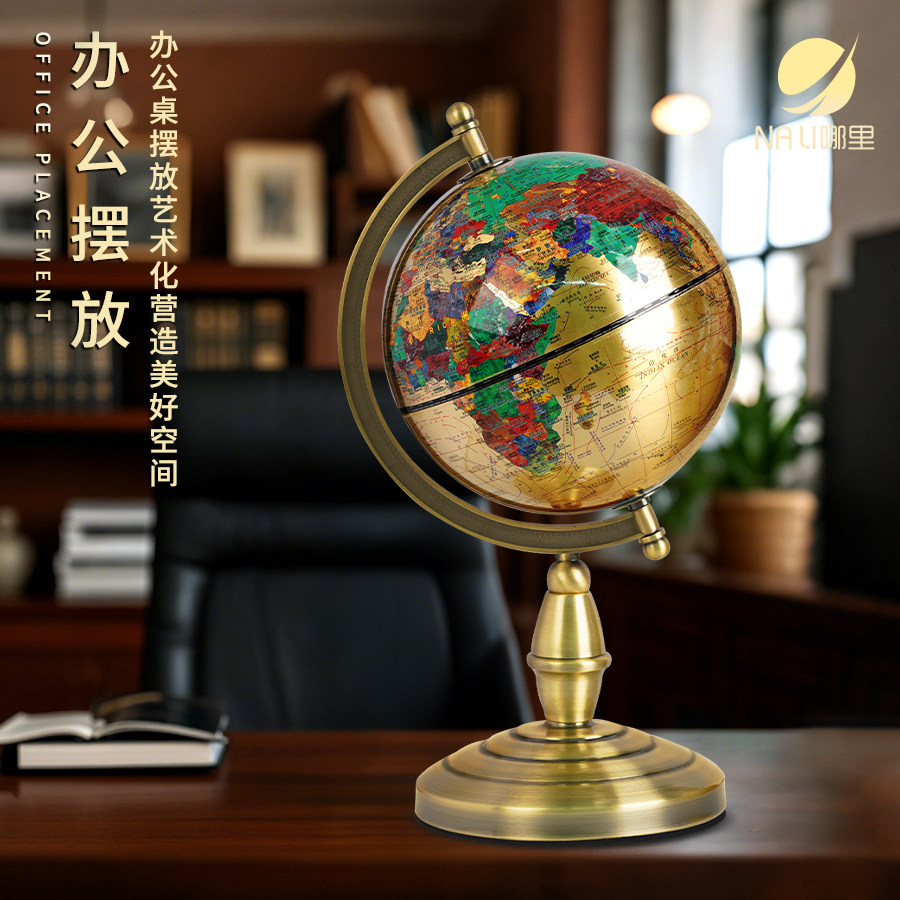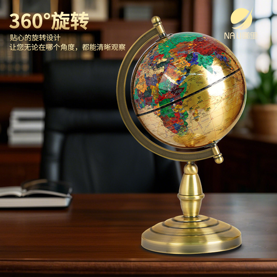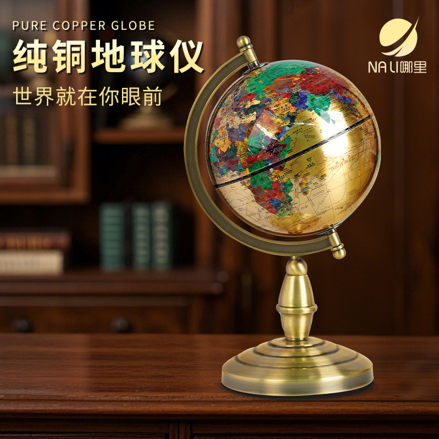 纯铜地球仪摆件轻奢高档办公室桌面复古高端酒柜装饰工艺品乔迁开业高级感金属大号客厅2026年新款送领导礼物