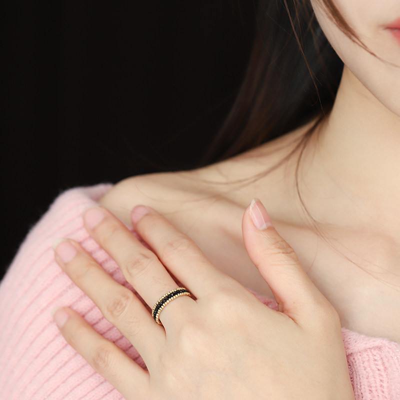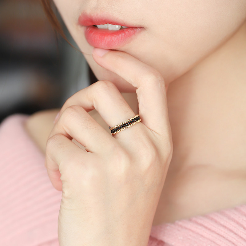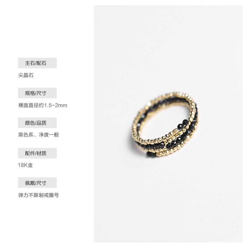 若华珠宝星焕=迷你黑尖晶石戒指女18K金弹力尾戒多层指环礼物定制