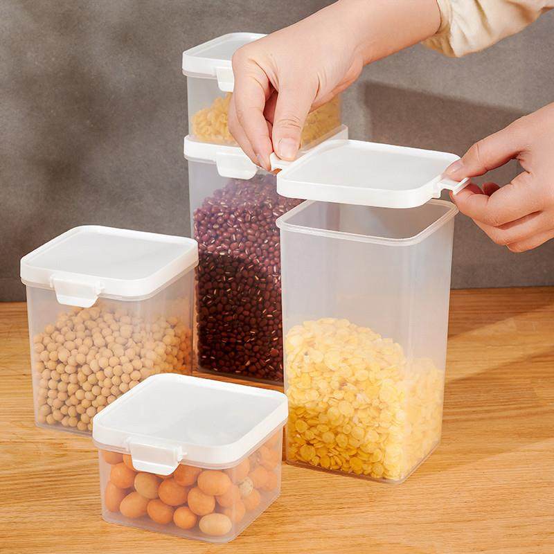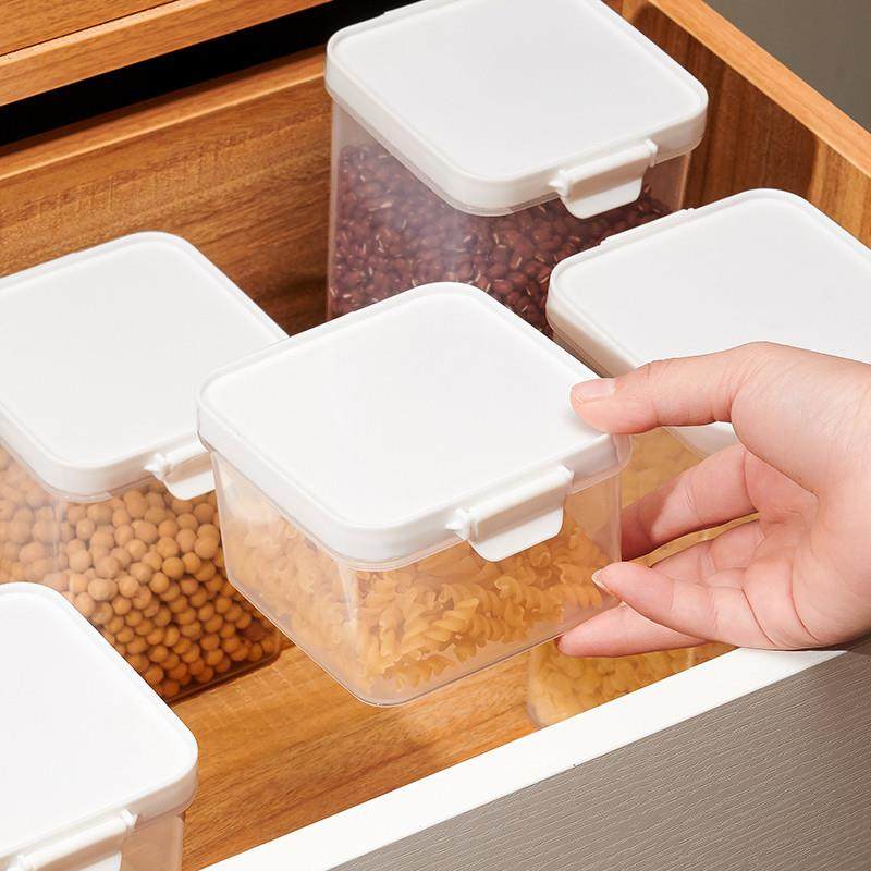 家用食品级收纳罐厨房五谷杂粮密封罐方形透明茶叶干货储物零食盒