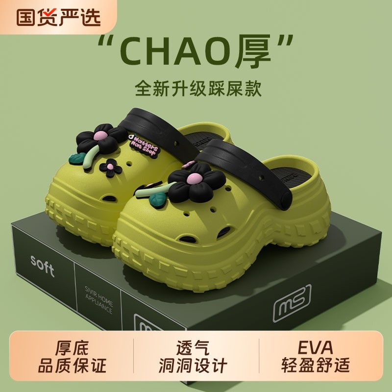 多巴胺洞洞鞋女款厚底增高diy小花夏季户外踩屎感凉拖鞋海边防滑