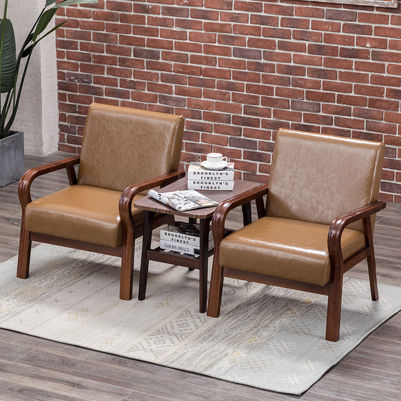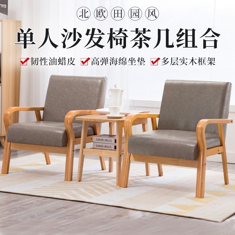 单人沙发椅办公接待咖啡厅酒店会客洽谈实木阳台休闲茶桌椅子组合