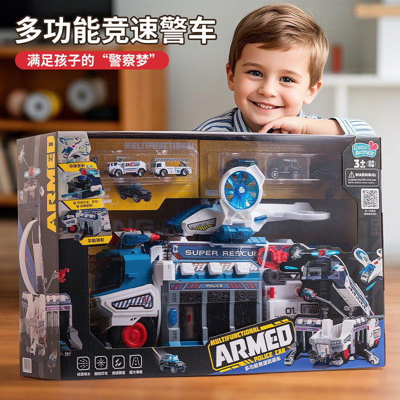 多功能救援消防车玩具男孩大号警车合金声光喷水弹射轨道益智男童