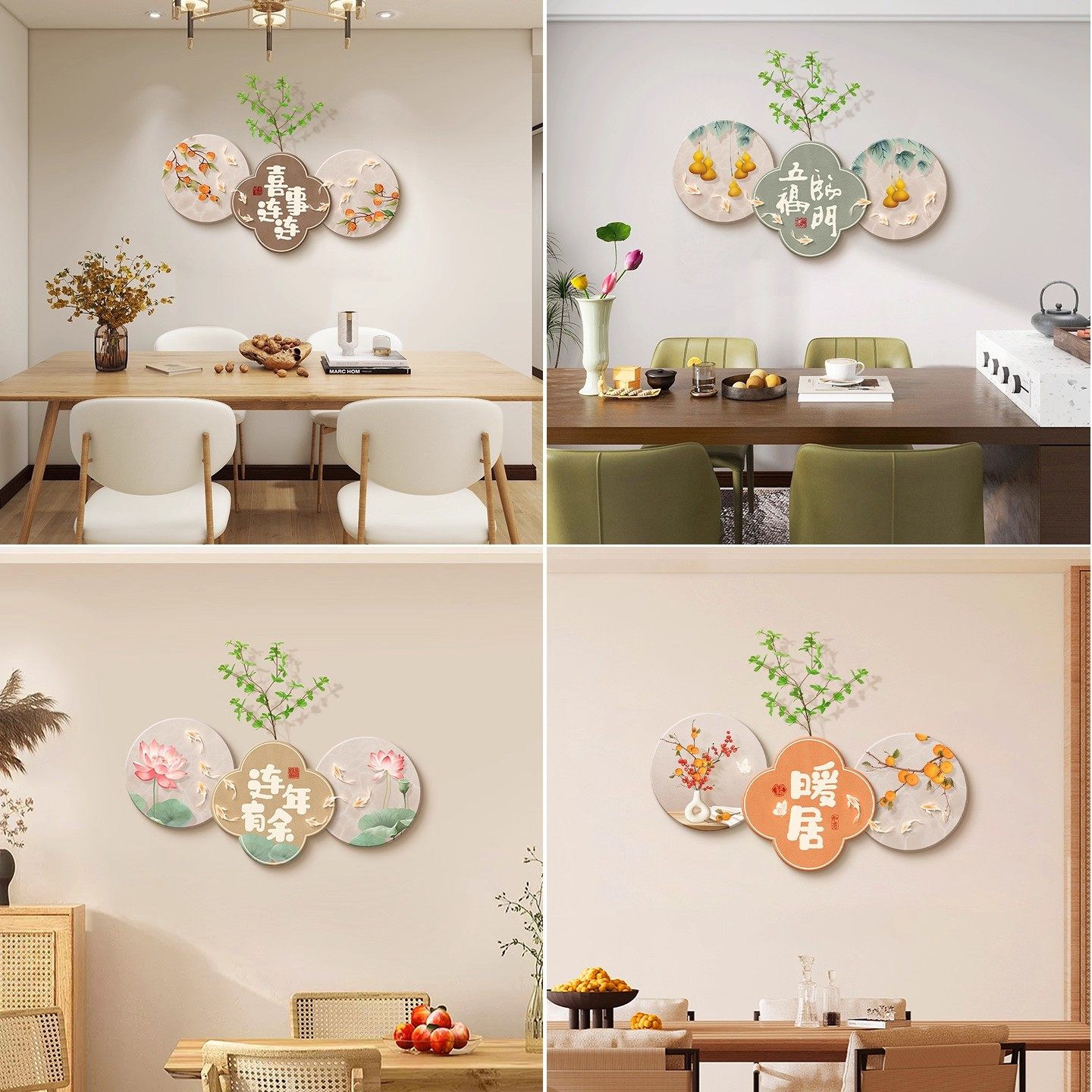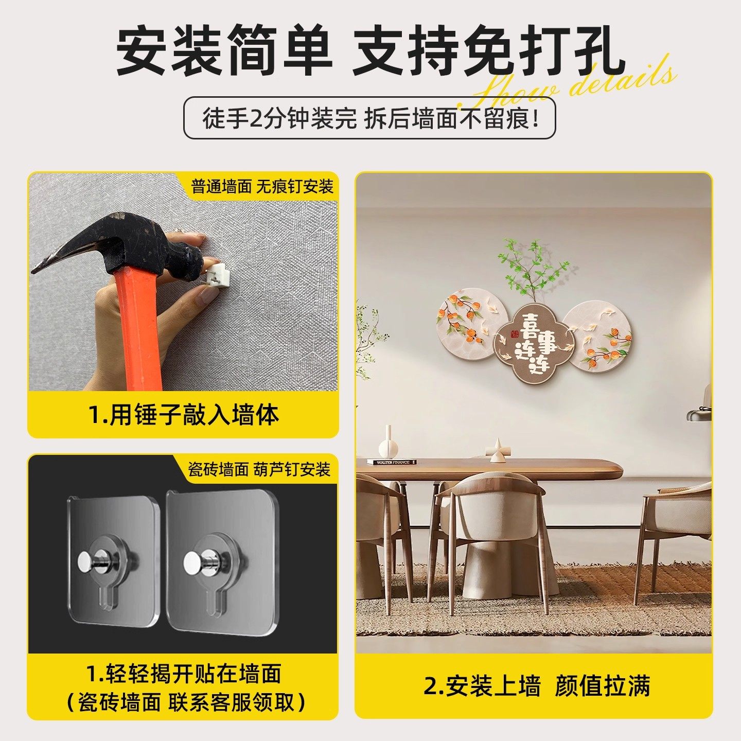 新中式餐厅装饰画饭厅墙面壁画客厅沙发背景墙挂画圆形柿柿如意画