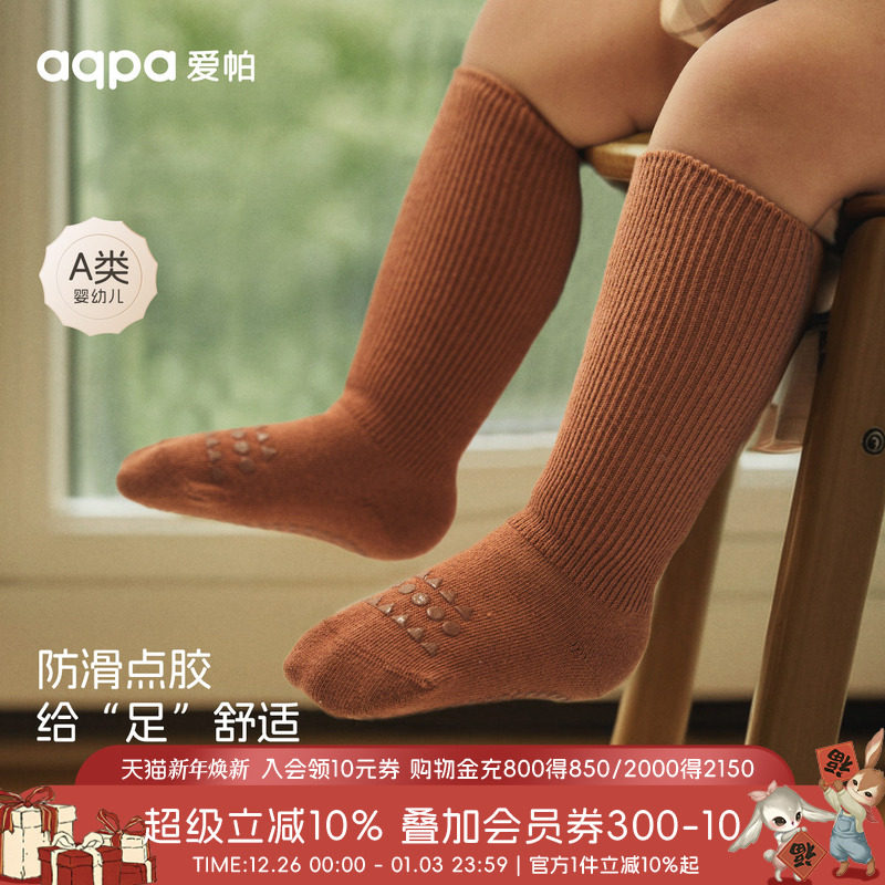 aqpa爱帕婴儿袜子宝宝防滑袜儿童地板袜秋季纯棉厚款学步袜