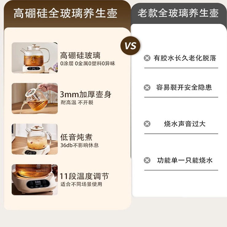 九阳养生壶办公室小型全自动加厚玻璃保温家用多功能煮茶器烧水壶