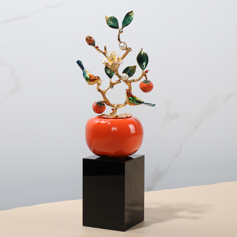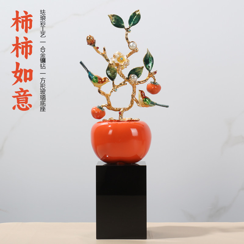 柿柿如意 喜上枝头 金属树脂 珐琅彩