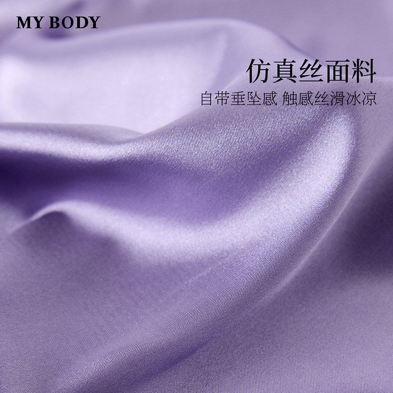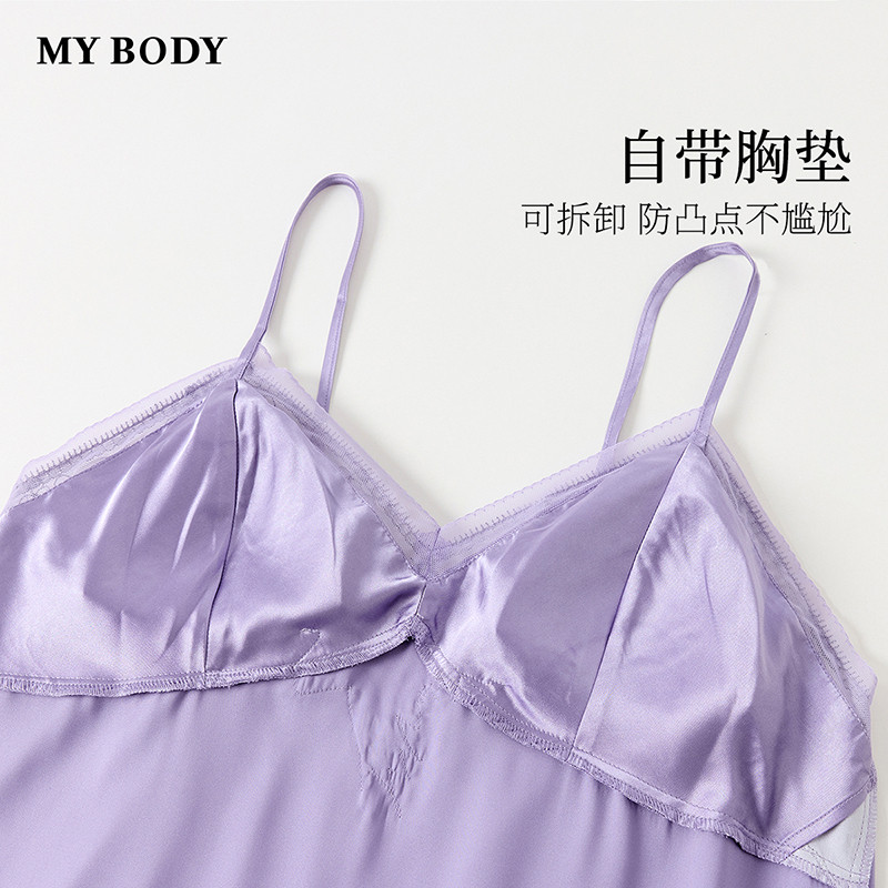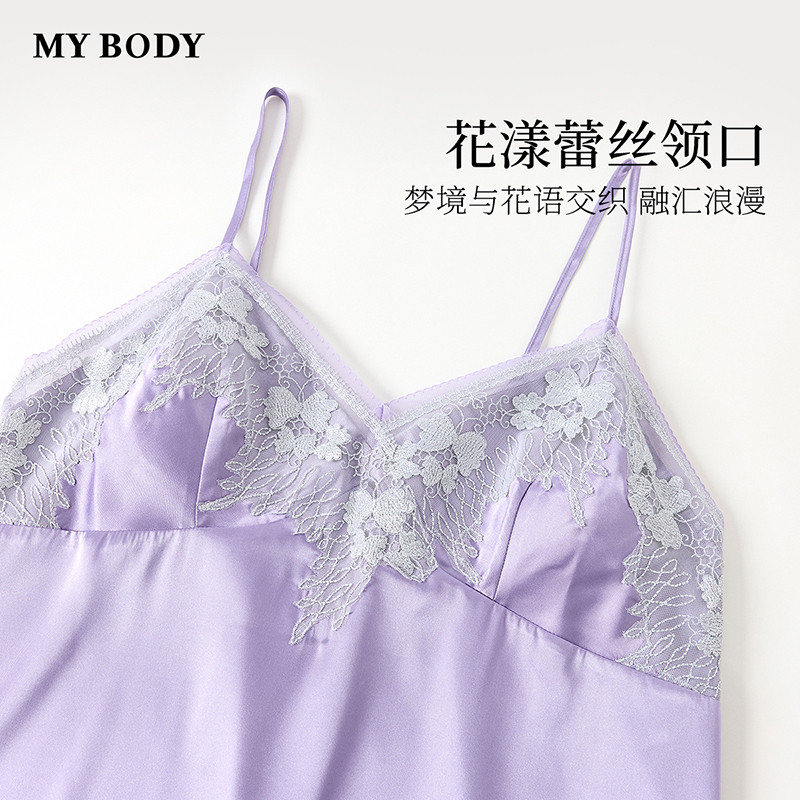 商场同款MYBODY新款睡裙花漾蕾丝V领高级丝滑吊带带胸垫性感睡衣