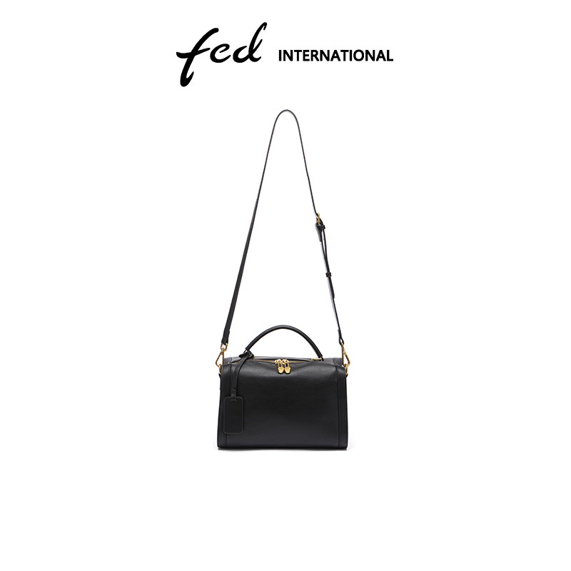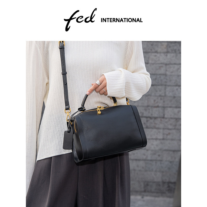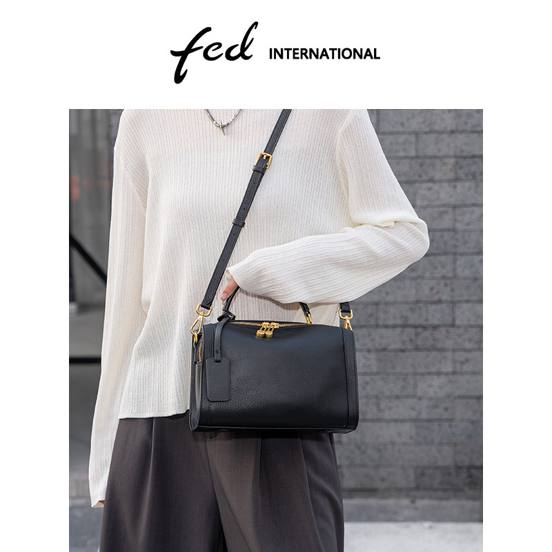 fed头层牛皮真皮女包斜垮单肩波士顿包雅丹风枕头包BFA9279