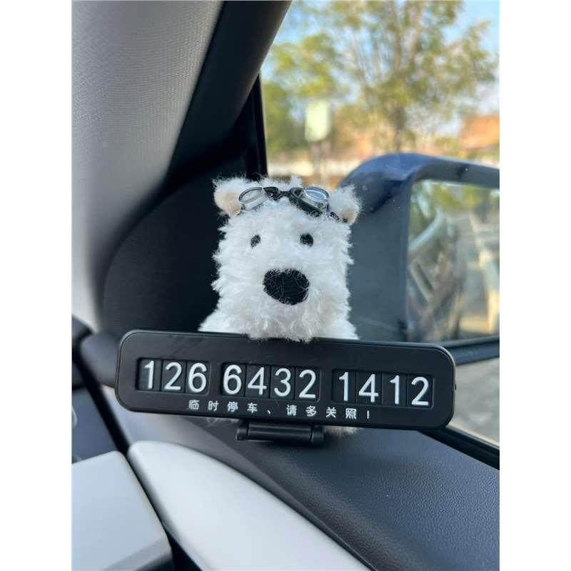 汽车饰品摆件挂件高级女西高地狗车载挪车电话号码牌可爱临时汽车