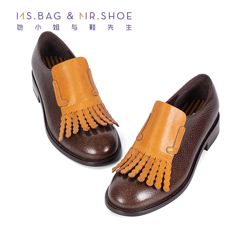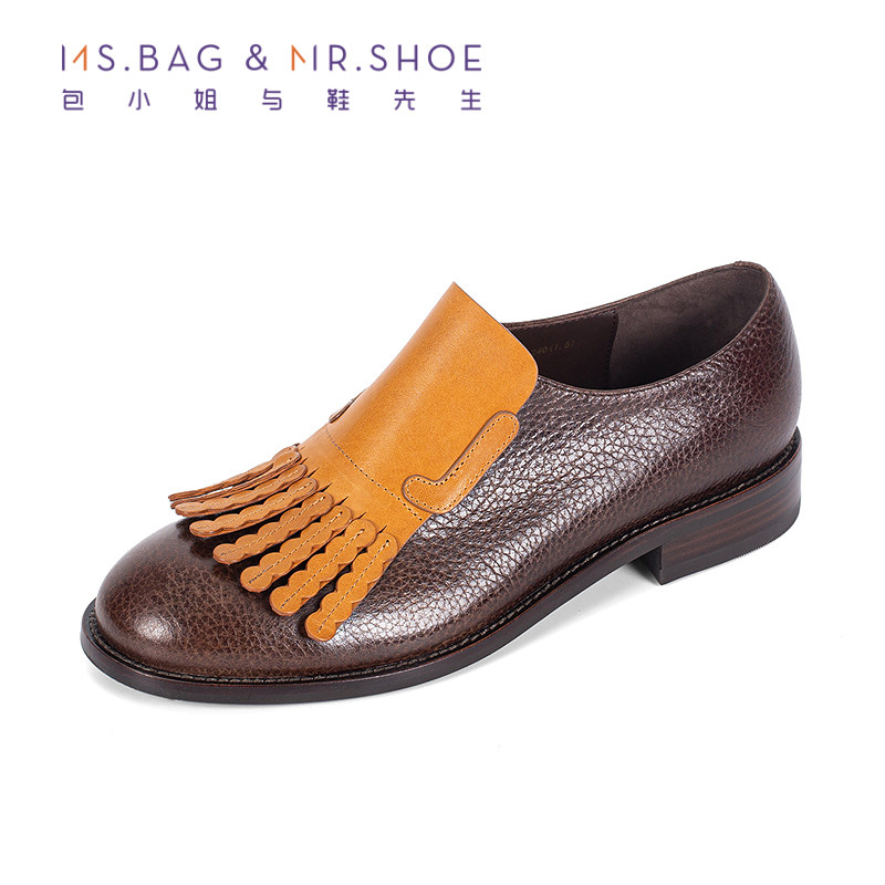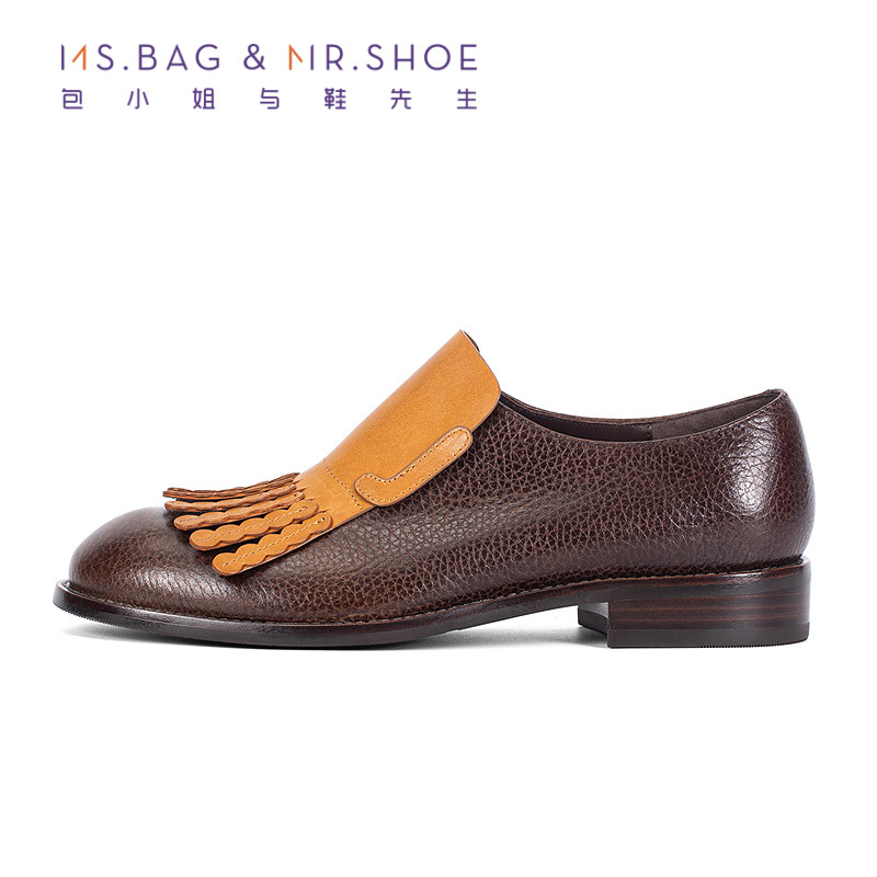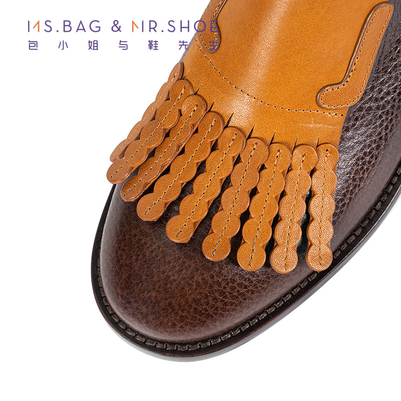 包小姐与鞋先生2025年秋季新款牛皮流苏装饰低跟乐福单鞋253087