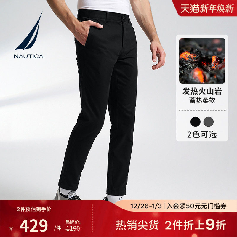 [火山岩]NAUTICA/诺帝卡男装秋冬磨毛保暖亲肤微弹休闲长裤PO3421