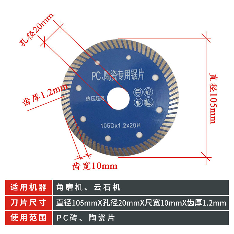 PC陶瓷切割片瓷砖切割片超薄干切玻化砖全瓷微晶石角磨机锯片