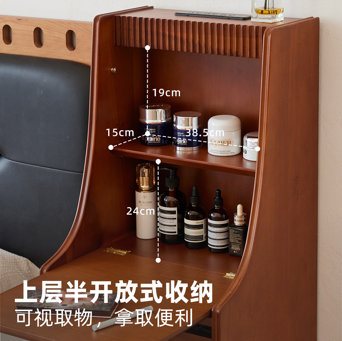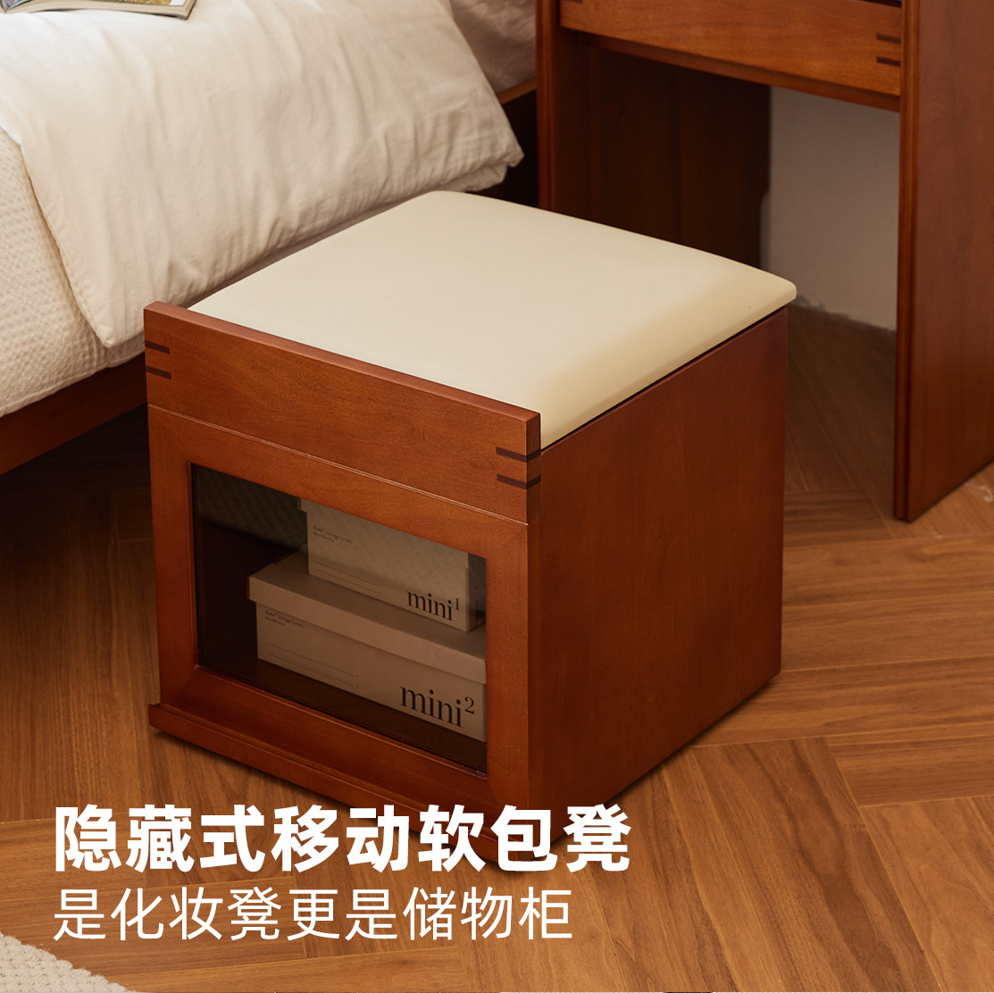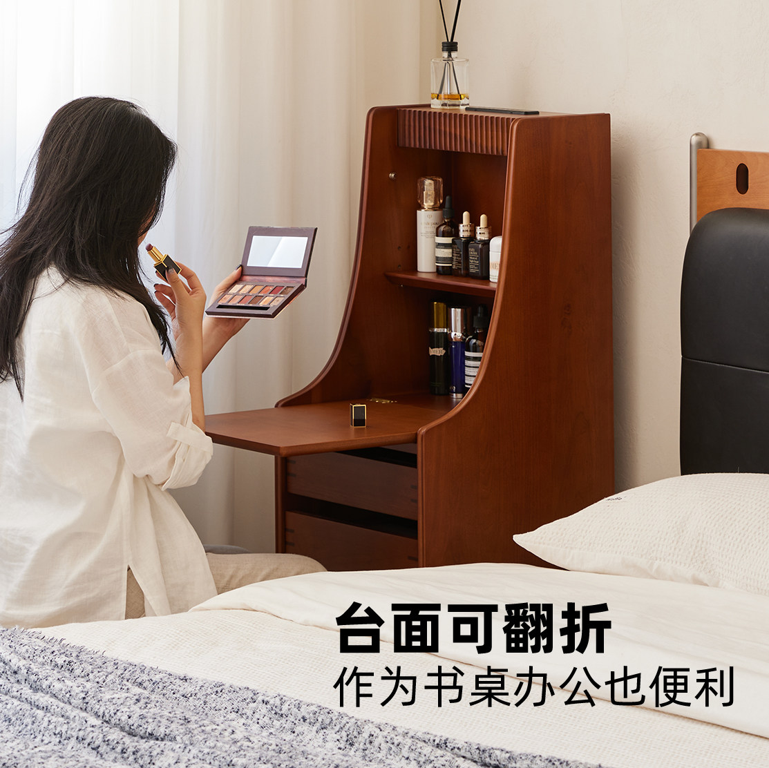 lucas升级移动床头柜梳妆台书桌一体带梳妆凳复古风实木中古家具