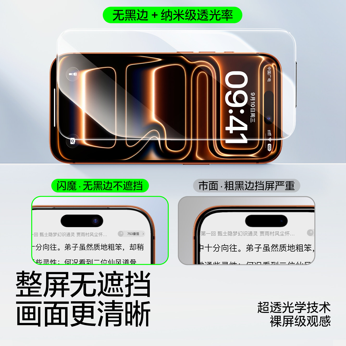 闪魔小魔盒适用iPhone16ProMax钢化膜16e苹果15pro无黑边13 promax无尘仓屏幕14plus全屏覆盖12手机保护贴膜