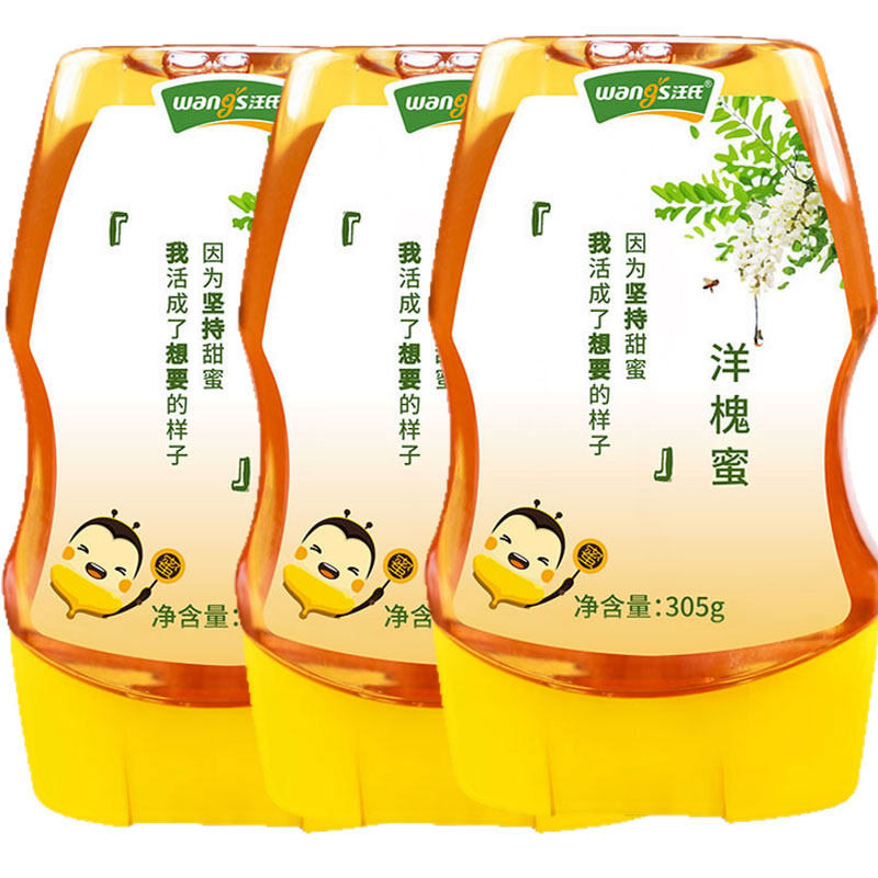 【60年老品牌】汪氏蜂蜜野生农家蜂巢纯正洋槐蜜305g*3瓶装旗舰店