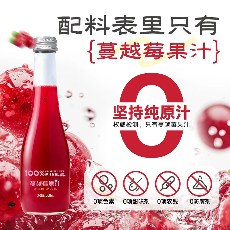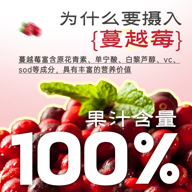 【原果鲜榨】大兴安岭蔓越莓汁100%霜冻采摘冰点浆果新鲜现榨饮品