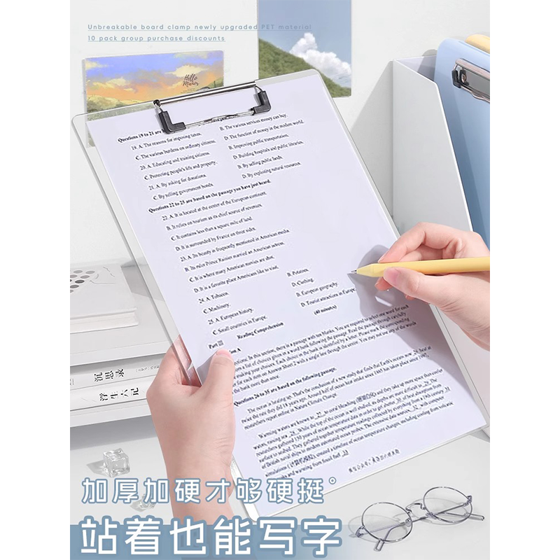 透明亚克力a4板夹文件夹夹板文具菜单学生写字书写硬板试卷夹子竖版记录书夹纸简约办公用品便携塑料资料夹子