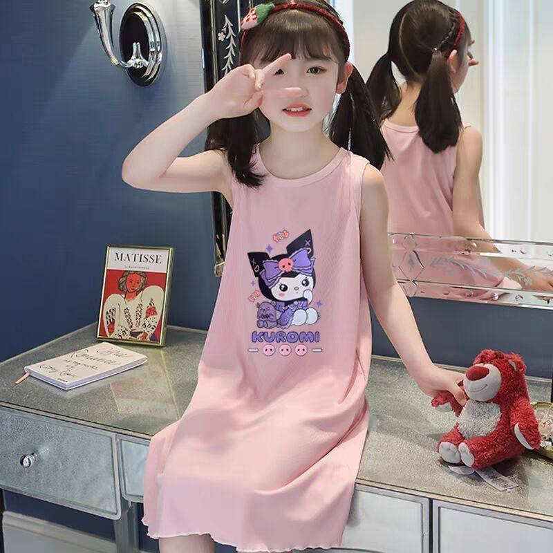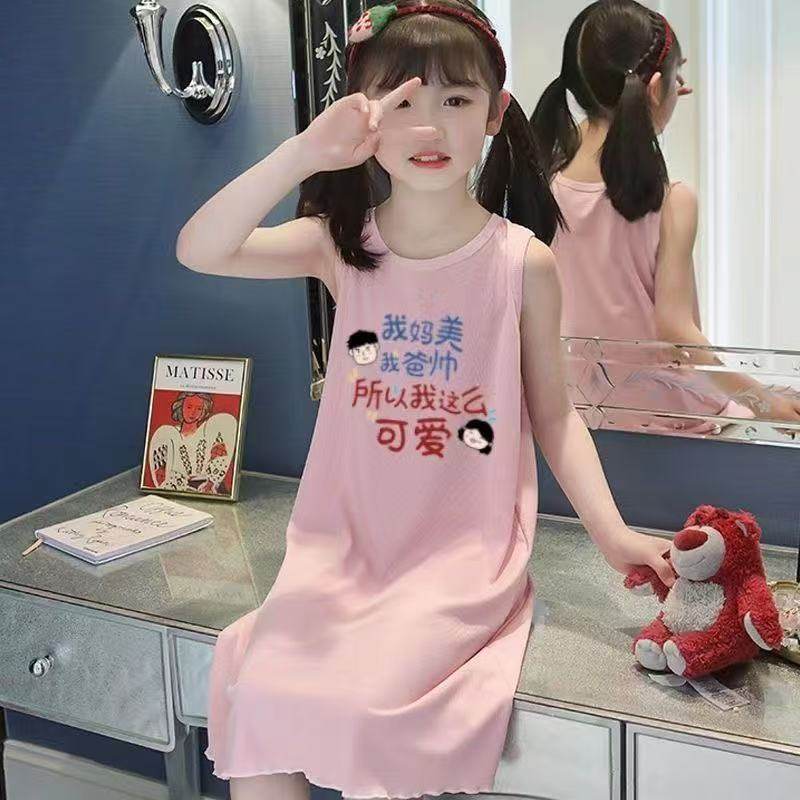 2025新款女孩冰丝莫代尔女童夏季背心裙卡通睡衣裙母女亲子家居服