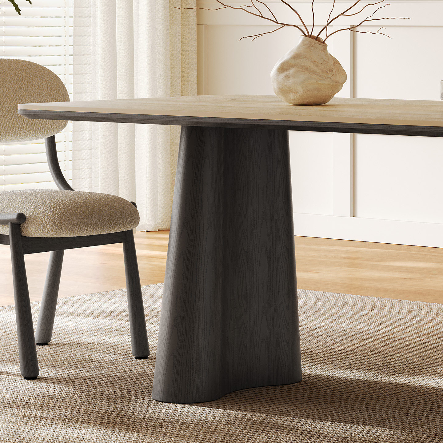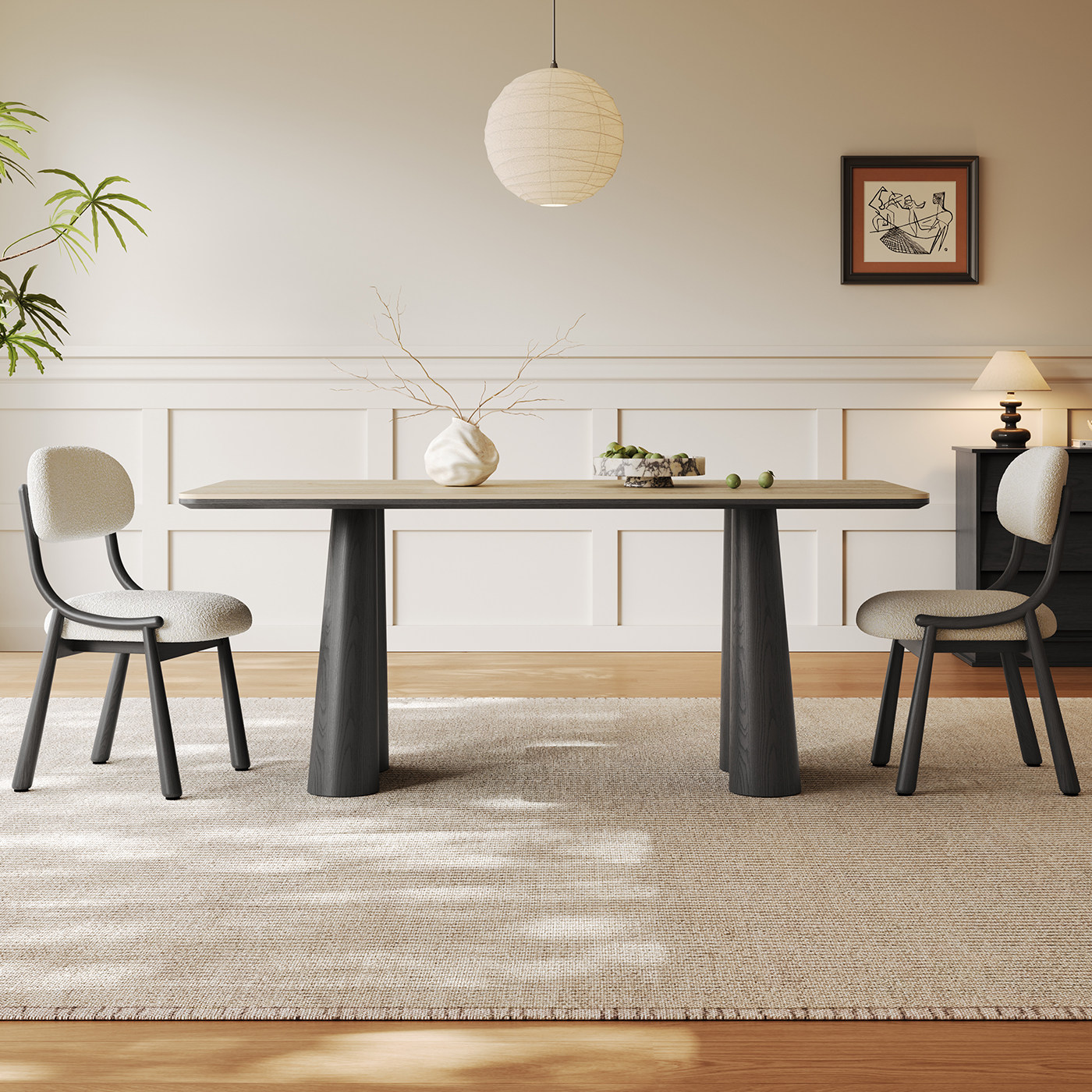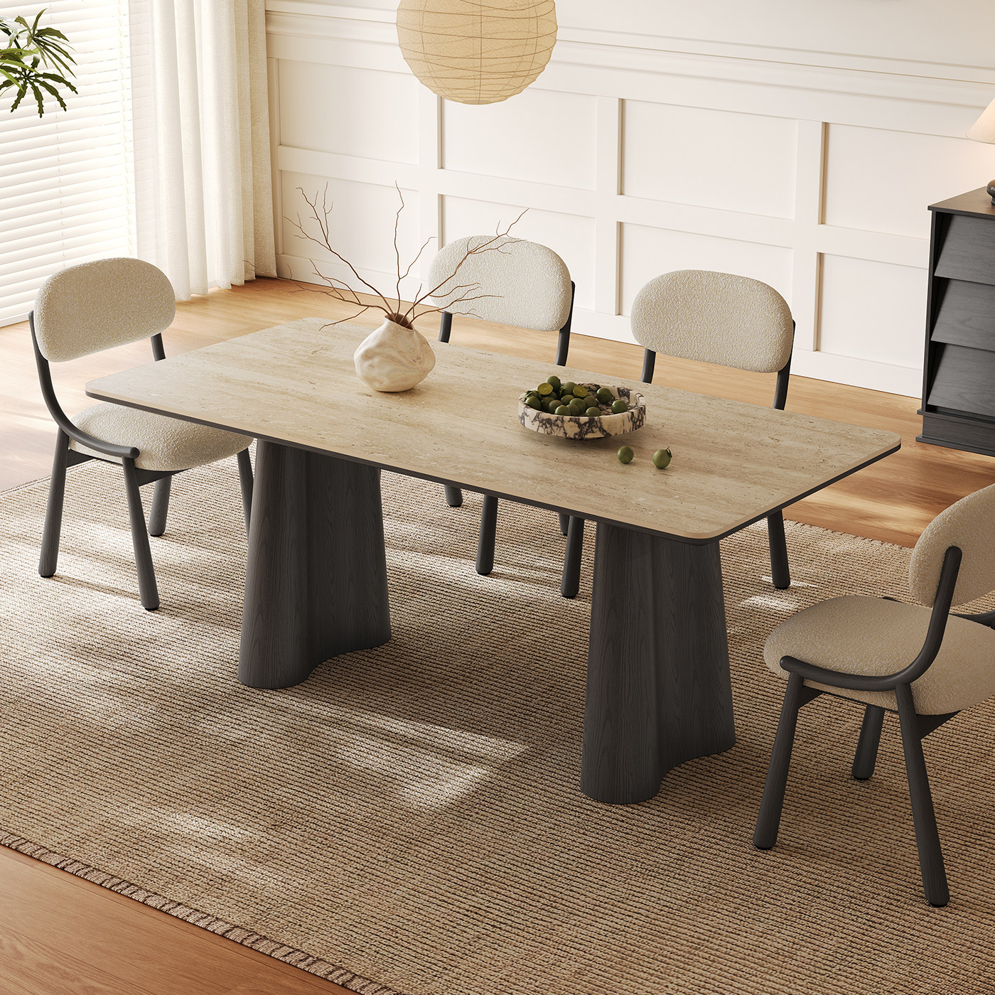 实木餐桌家用小户型黑色2025新款现代简约长方形复古洞石岩板餐桌