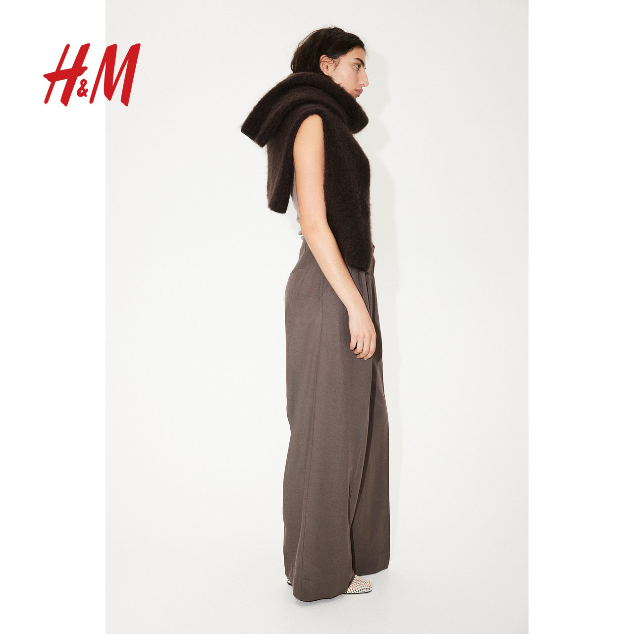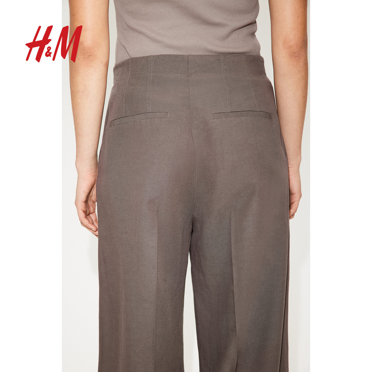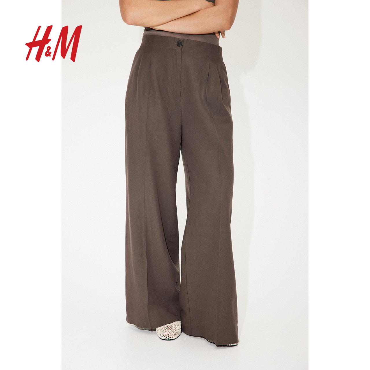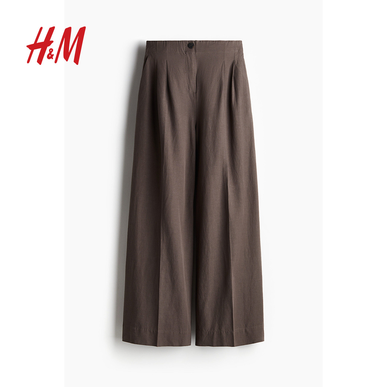 HM阔腿裤2025年秋季新款亚麻混纺阔腿裤1259138