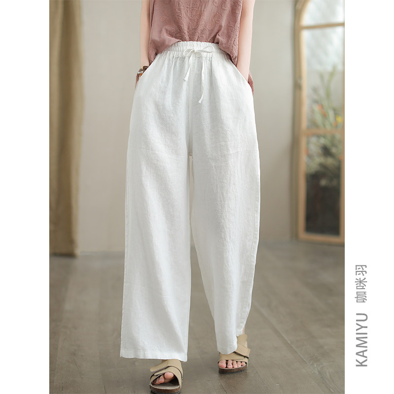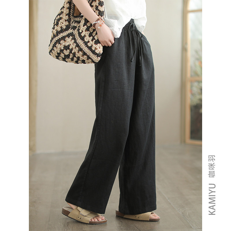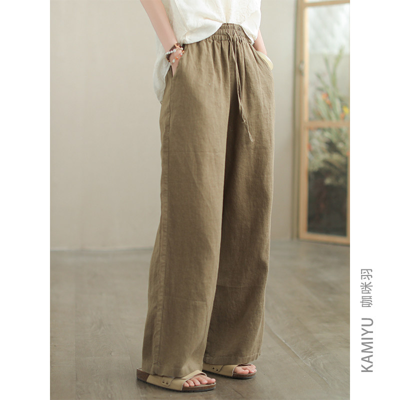 咖咪羽100%亚麻文艺直筒宽松专柜品质休闲百搭女式显瘦女装休闲裤