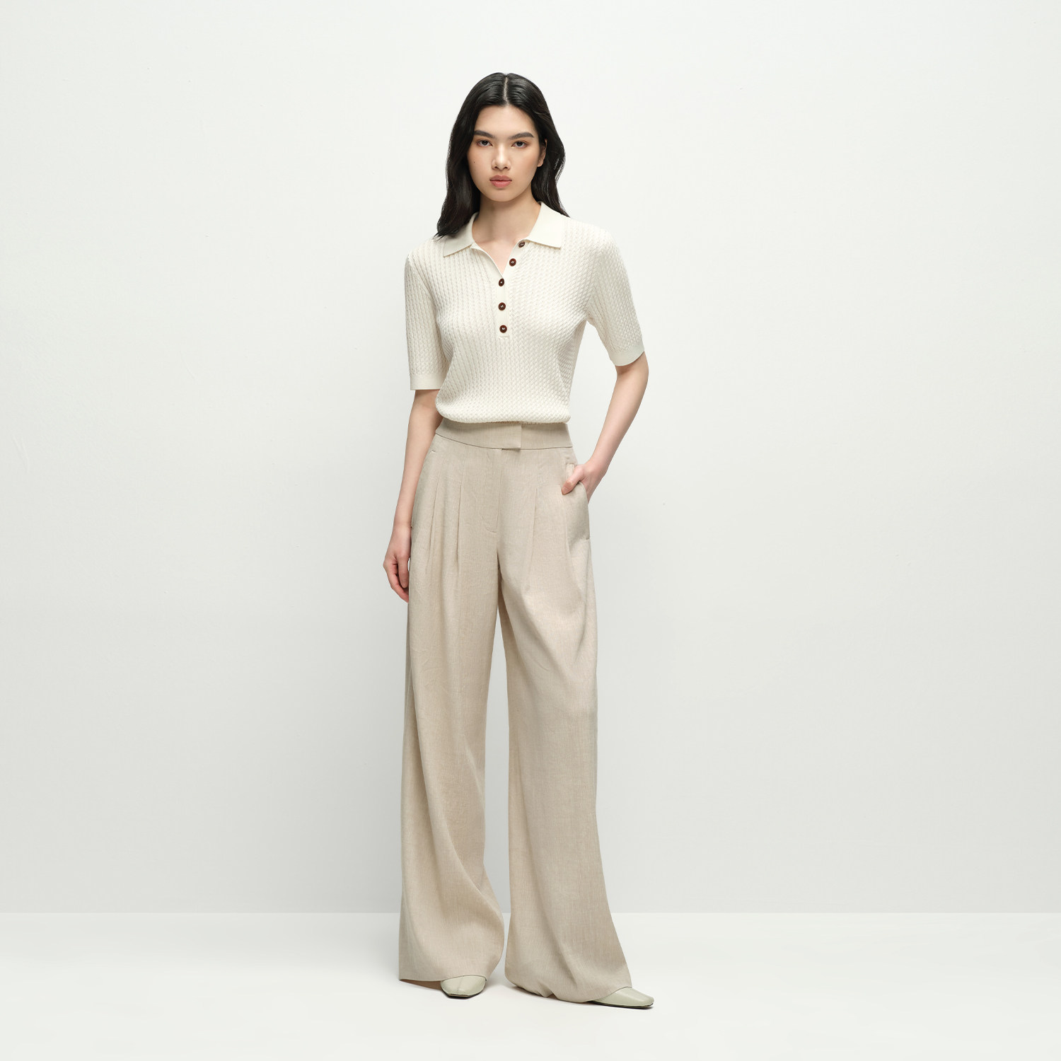 亚麻混纺 休闲松弛感 阔腿版型