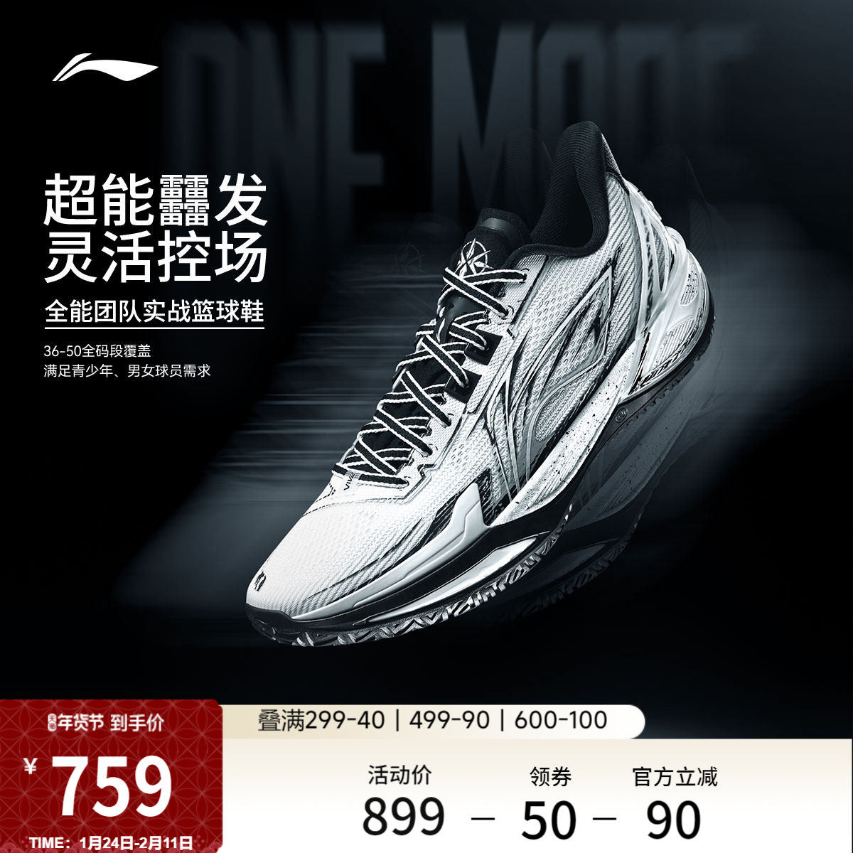 李宁利刃6V2假面 | 鸳鸯配色篮球鞋男女同款专业实战青少年运动鞋